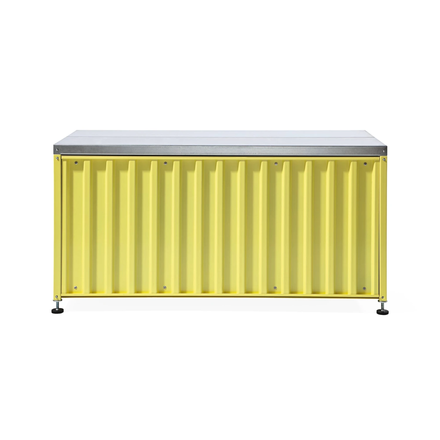 Synoniem voor opslag en transport: de container in zijn oervlak van gevouwen staal. Wij bieden dit kastmeubel in de geminiaturiseerde vorm van de overzeese container aan in vier verschillende uitvoeringen. Deze goed geproportioneerde opbergboxen dienen vele doeleinden en toepassingsgebieden. Alle containers hebben perforaties in de bodem om kabels door te voeren. Zowel de klassieke container als de platte en kleine containers hebben deuren die aan de bovenkant van de bak scharnieren, die bij het openen in de bovenkant van de bak schuiven en zo bijna volledig verdwijnen. De CONTAINER DS PLUS staat rechtop en heeft een conventionele scharnierende deur aan de zijkant.