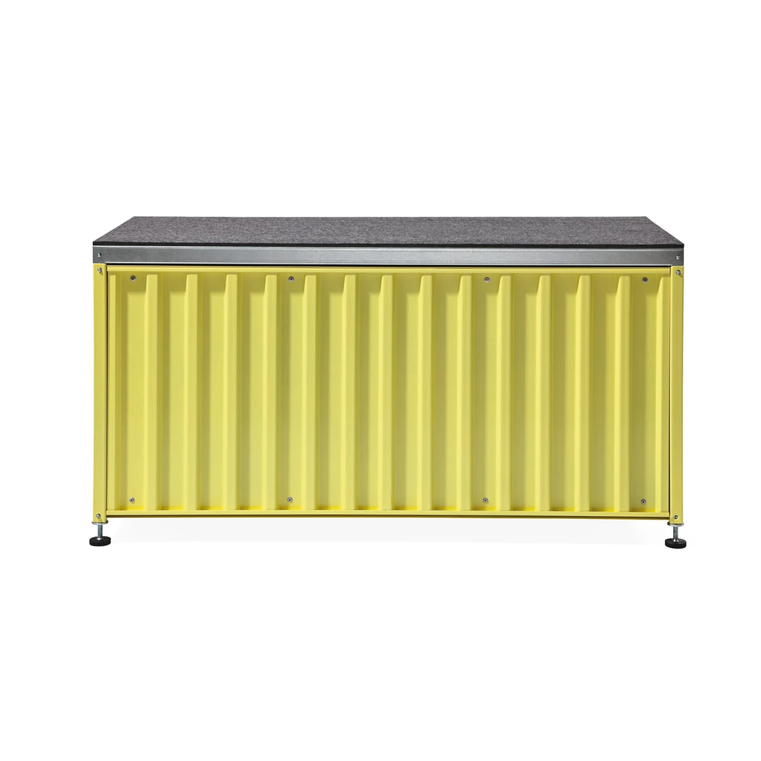 Onze CONTAINER DS heeft een behuizing van gekantrecht plaatstaal – standaard en aan alle zijden. Te veel rand? Of gladde opslag gewenst? De bankplank biedt een glad oppervlak om op te zitten of als plank. Belastbaar tot 100 kilogram, geschikt voor de CONTAINER DS, CONTAINER DS AIR, CONTAINER DS met slot, CONTAINER DS FLAT en plankelement TARA. De bankplank wordt met de meegeleverde verbindingsstukken aan het frame van de container of het legbordelement bevestigd. Hierdoor kan het worden gebruikt als plaats voor de TV of andere apparatuur. Voor meer zitcomfort adviseren wij het zitkussen voor de bank.