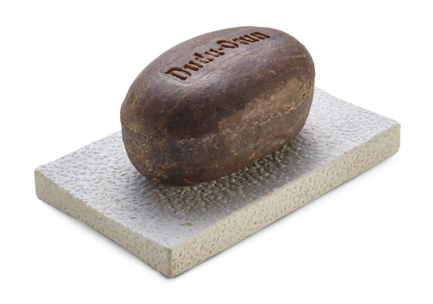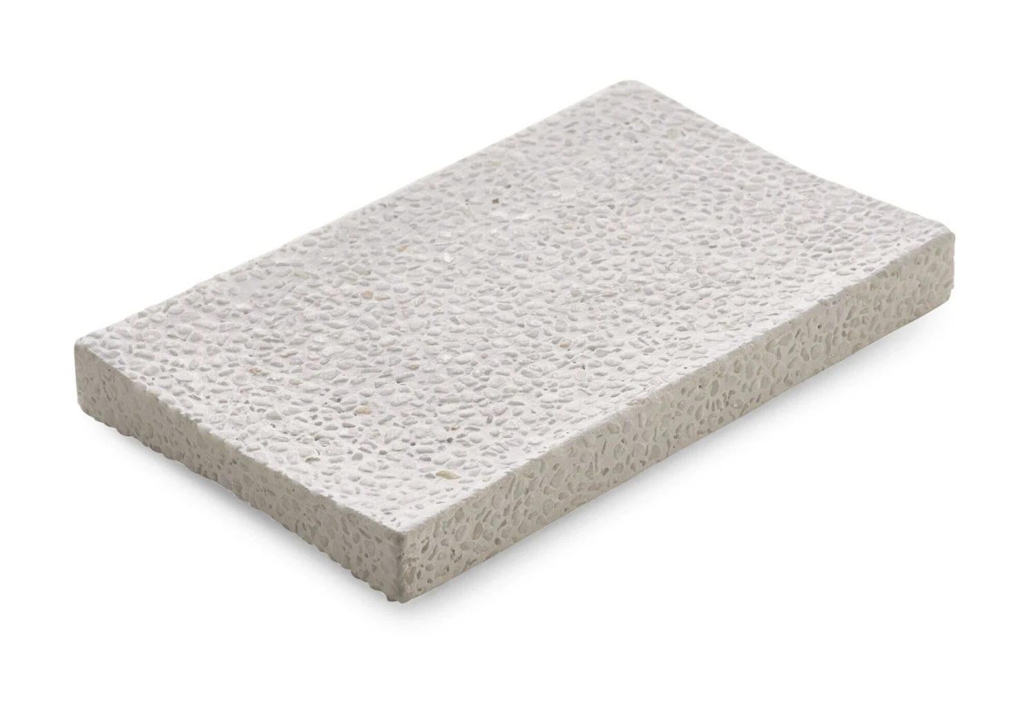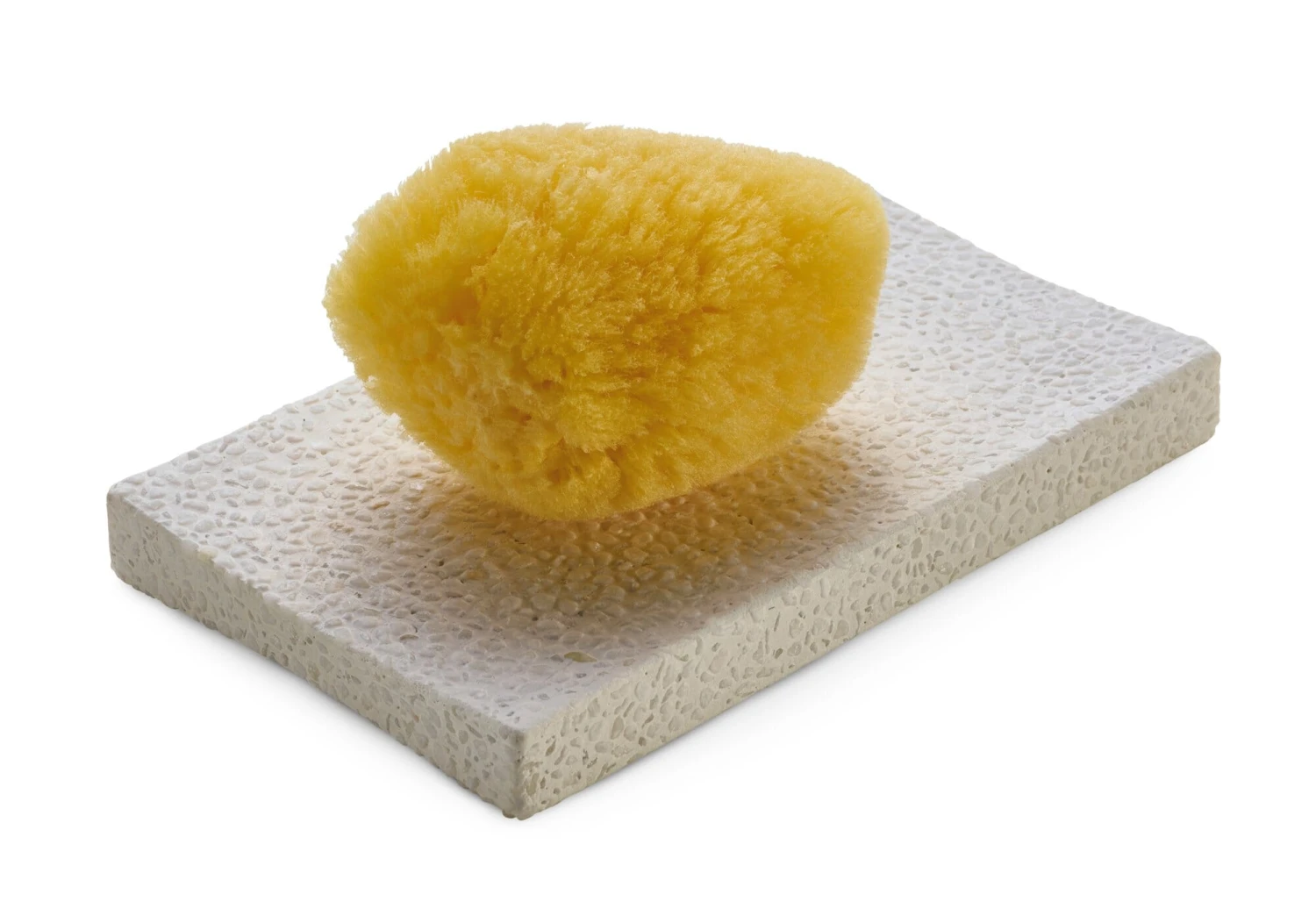 Rechthoekig dienblad voor zeep of sponzen, voor gebruik in badkamer of keuken. Het materiaal kan het vocht van de zeep of spons snel en volledig absorberen – het oppervlak blijft dus altijd droog en schoon. In het materiaal verwerkte kleine steentjes dragen bij tot een betere stabiliteit. Van tijd tot tijd moet de bak worden gereinigd van zeepresten of andere aanslag: gewoon met een schrobber en een beetje water wrijven en dan laten drogen voor verder gebruik. Gemaakt van diatomeeënaarde. Lengte 13 cm, breedte 8 cm, hoogte 1,5 cm. Gewicht 260 g.