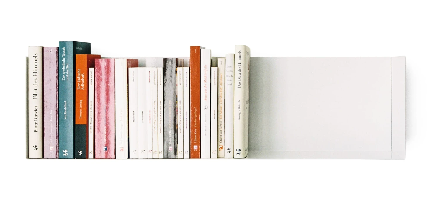 Deze planken uit de productfamilie LINEA 1 overtuigen door hun perfecte afwerking en het minimale gebruik van materialen die op het doel zijn gericht. Een flinterdunne plankconstructie: door het vouwen van één stuk plaatstaal van 1,5 millimeter dik ontstaat een stabiele vorm. In het zicht valt het delicate plaatstaal bijna volledig weg ten opzichte van de inhoud, terwijl de schaduwvoeg naar de muur de indruk van lichtheid versterkt en de onzichtbare bevestiging mogelijk maakt. De plaatdikte en de overspanning van de planken zijn nauwkeurig op elkaar afgestemd, zodat het materiaal optimaal wordt benut. Wij bieden LINEA 1 in drie formaten aan. Ideaal voor kleinere boekformaten, voor CD’s en dossiermappen. Het bevestigingsmateriaal is niet bij de levering inbegrepen.