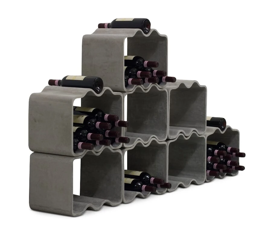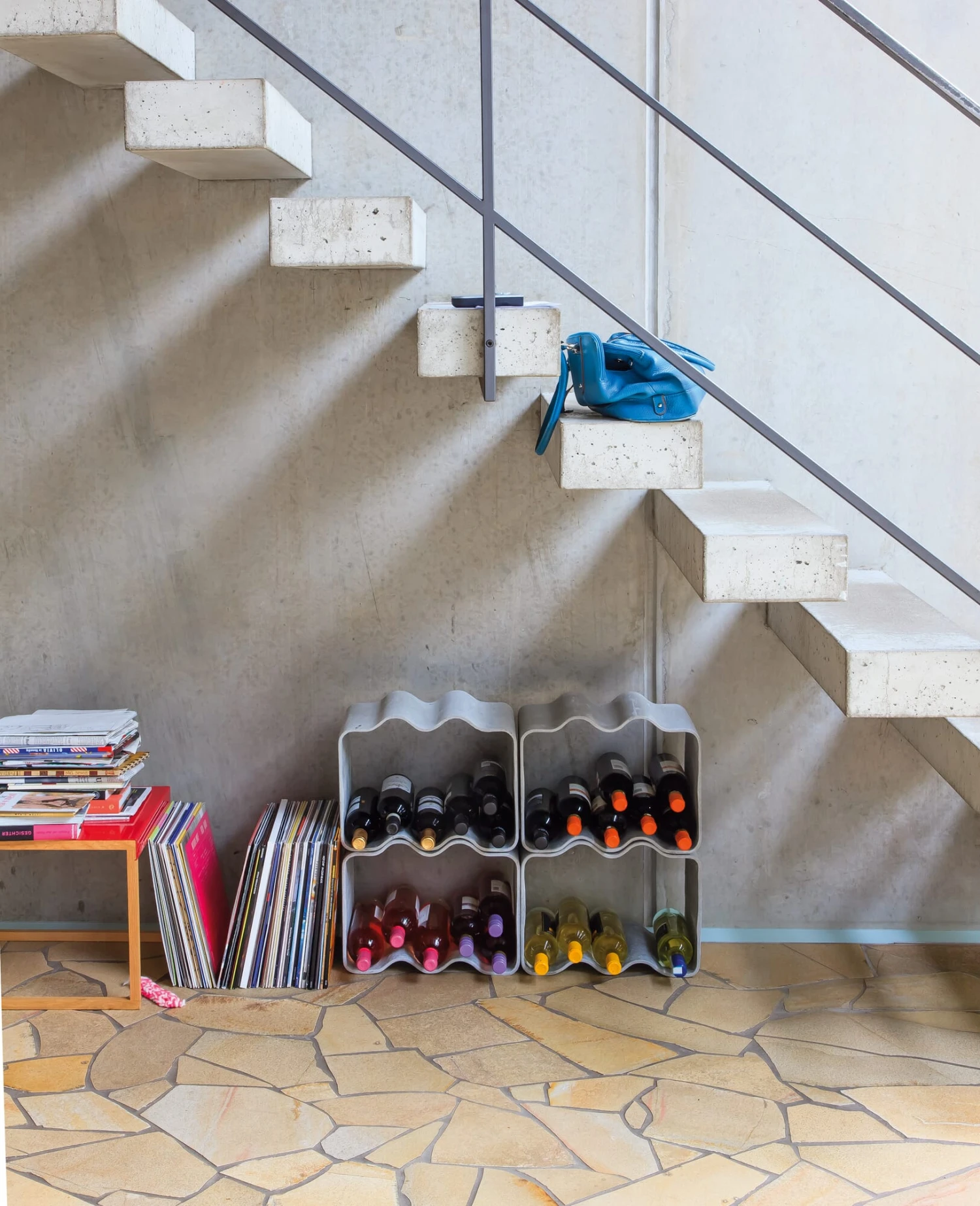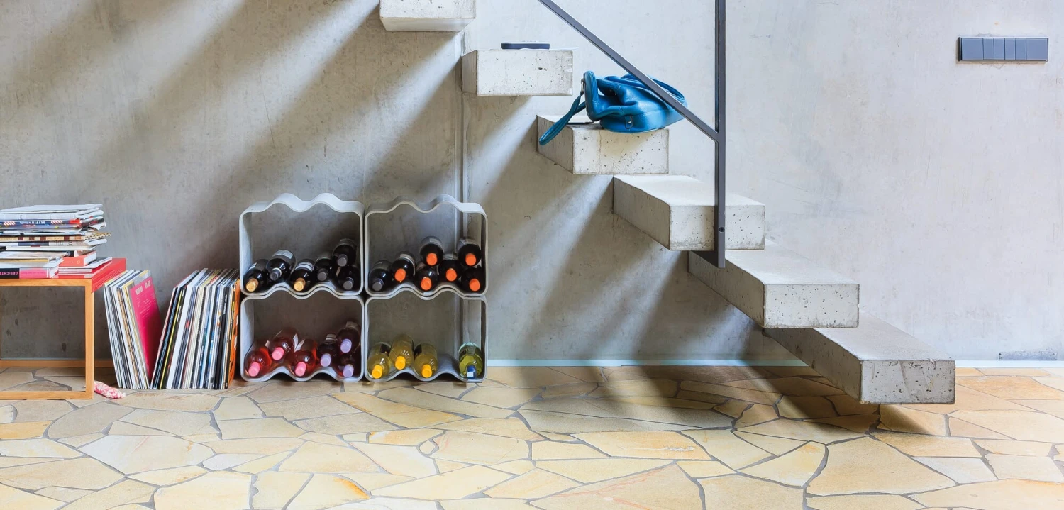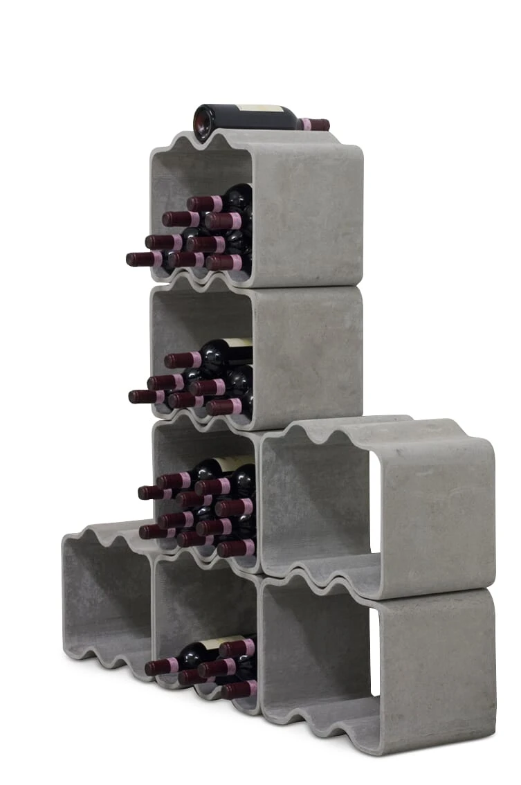 Het CHEERS wijnrek is gemaakt van het architectonische materiaal vezelcement, waarvan het basismateriaal wordt versterkt en gestabiliseerd door een geïntegreerde weefselmat. Eternit® heeft een lange traditie van samenwerking met Zwitserse ontwerpers – in dit geval met de groep thingdesign. De producten worden met veel vakmanschap vervaardigd en worden al tientallen jaren zonder asbestgehalte geproduceerd in het Zwitserse hoofdkantoor van het bedrijf.