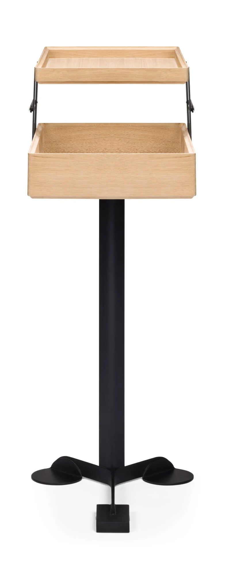 Afmetingen: B 30 × D 41 × H 71 cmGewicht: 6,5 kgMateriaal: eiken (herkomst: Europa), wit geolied of zwart gebeitst; staalOntwerp: Achille Castiglioni en Giancarlo Pozzi