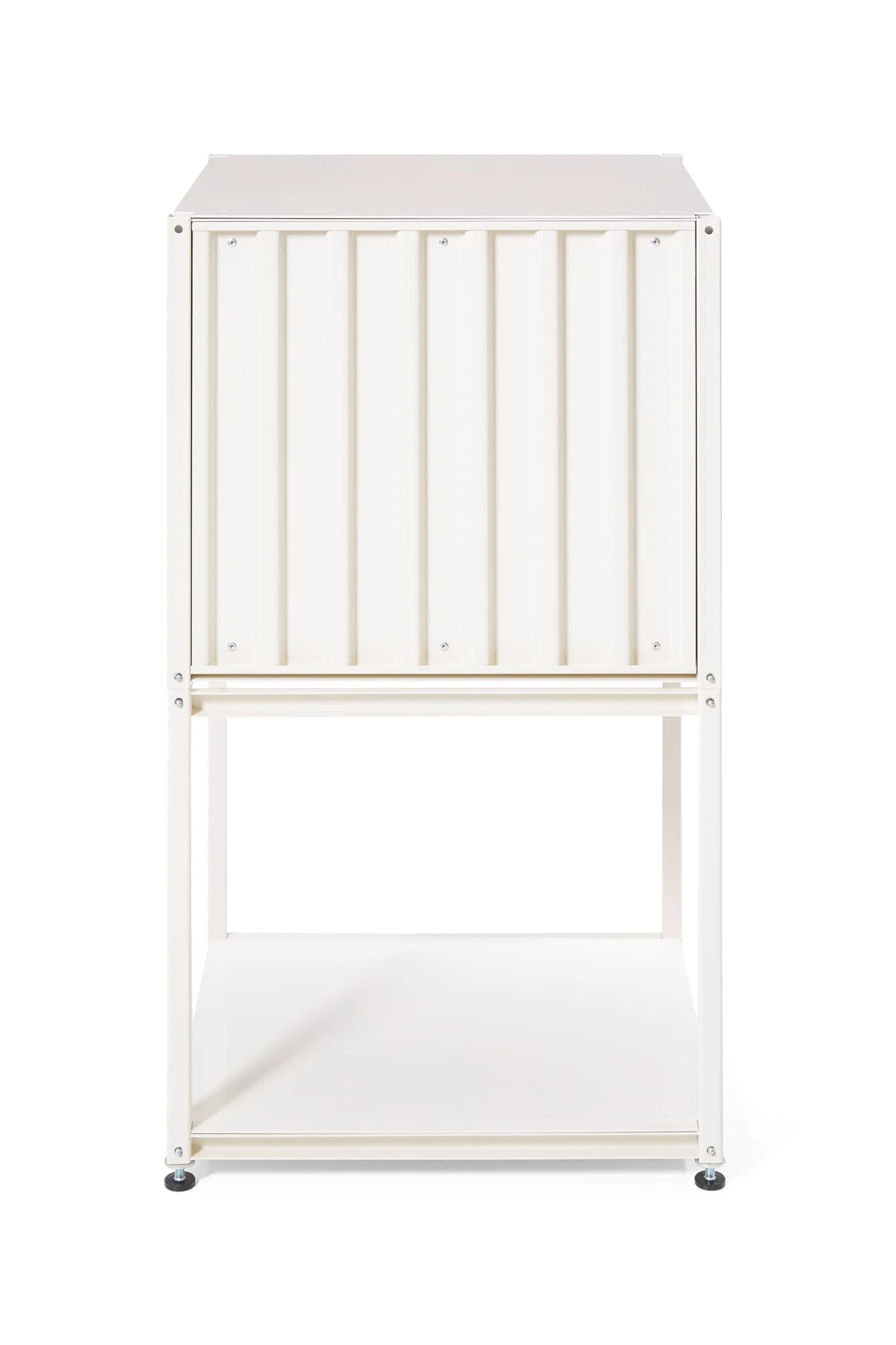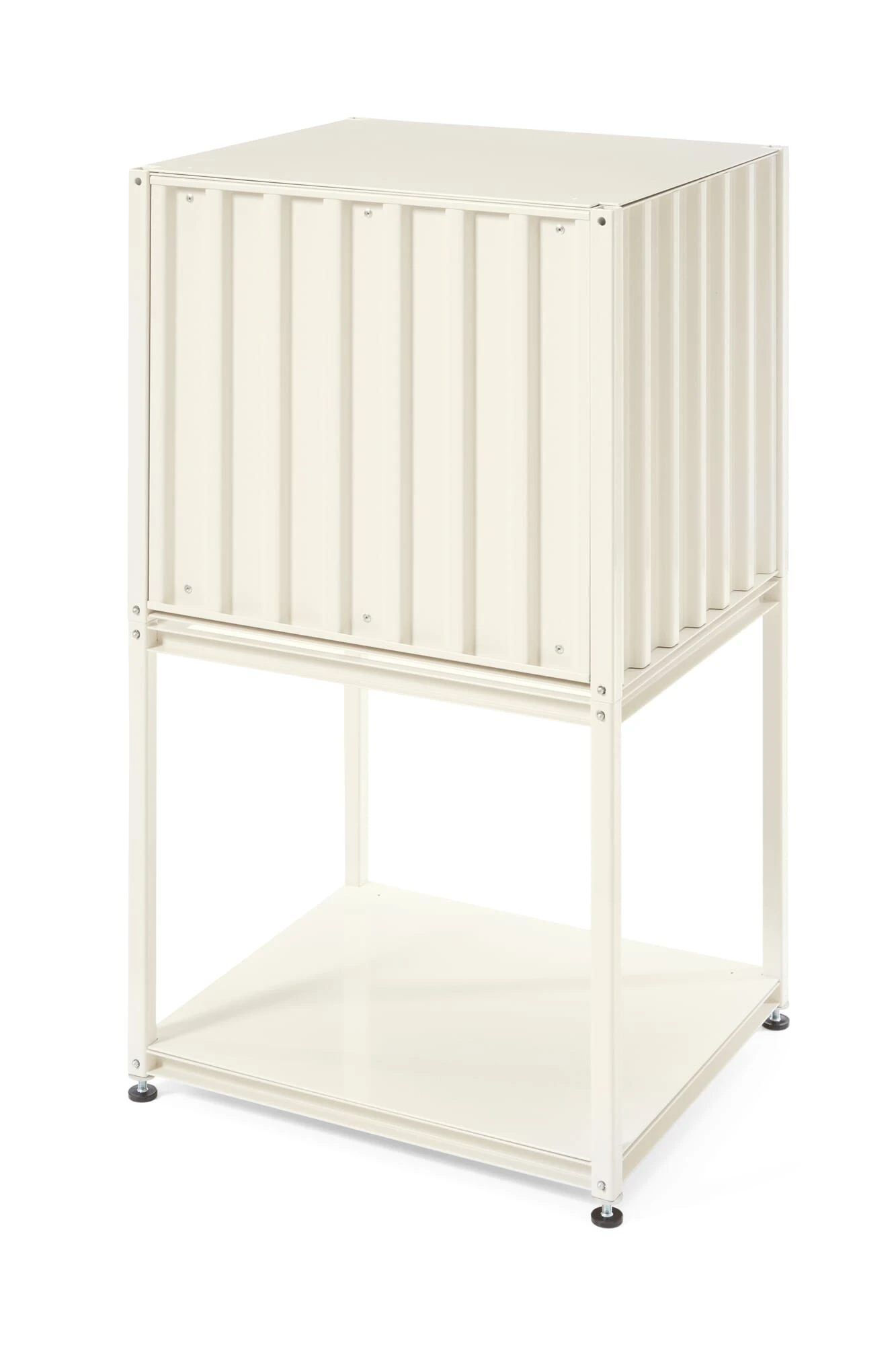 In tegenstelling tot zijn archetypische grote broer heeft de kleine broer van CONTAINER DS niet de proporties van een zeecontainer – hij is smaller, met dezelfde diepte en hoogte. Hij kan op verschillende manieren worden gebruikt: als bijzettafel, op zichzelf staand, gestapeld als kast in de badkamer of op andere plaatsen. Wij leveren de “kleine” inclusief een dekblad in de betreffende containerkleur. Bovendien is het binnenblad voorzien van een kabelopening met een diameter van vier centimeter in het midden, op een afstand van twee centimeter van de achterwand. Voor deze container leveren wij vier verbindingsstukken om de containers aan elkaar te bevestigen. Voor een perfecte pasvorm van de deur moeten de containers recht op een vlakke ondergrond staan of worden uitgelijnd met behulp van de in hoogte verstelbare poten of wielen. Voor CONTAINER DS KLEIN is ook een hele reeks verschillende accessoires verkrijgbaar, die de veelzijdigheid van het meubel nog verder uitbreiden.