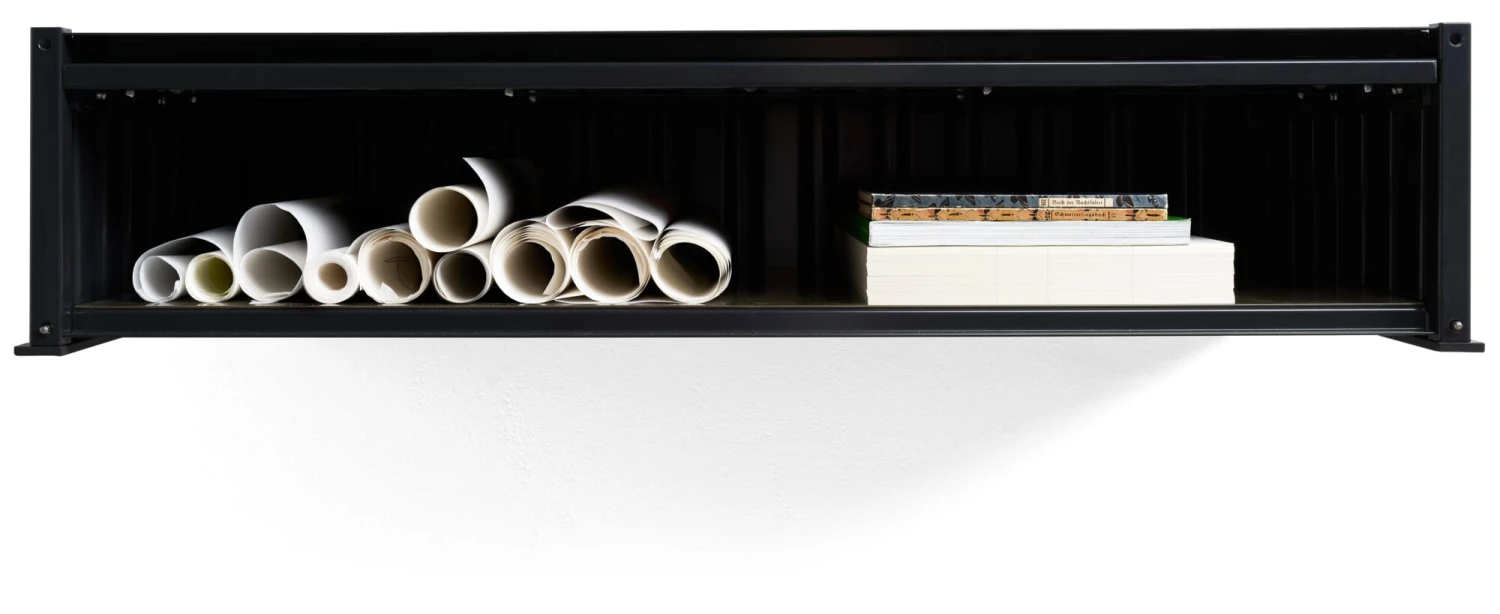 Synoniem voor opslag en transport: de container in zijn oervlak van gevouwen staal. Wij bieden dit kastmeubel in de geminiaturiseerde vorm van de overzeese container aan in vier verschillende uitvoeringen. Deze goed geproportioneerde opbergboxen dienen vele doeleinden en toepassingsgebieden. Alle containers hebben perforaties in de bodem om kabels door te voeren. Zowel de klassieke container als de platte en kleine containers hebben deuren die aan de bovenkant van de bak scharnieren, die bij het openen in de bovenkant van de bak schuiven en zo bijna volledig verdwijnen. De CONTAINER DS PLUS staat rechtop en heeft een conventionele scharnierende deur aan de zijkant.