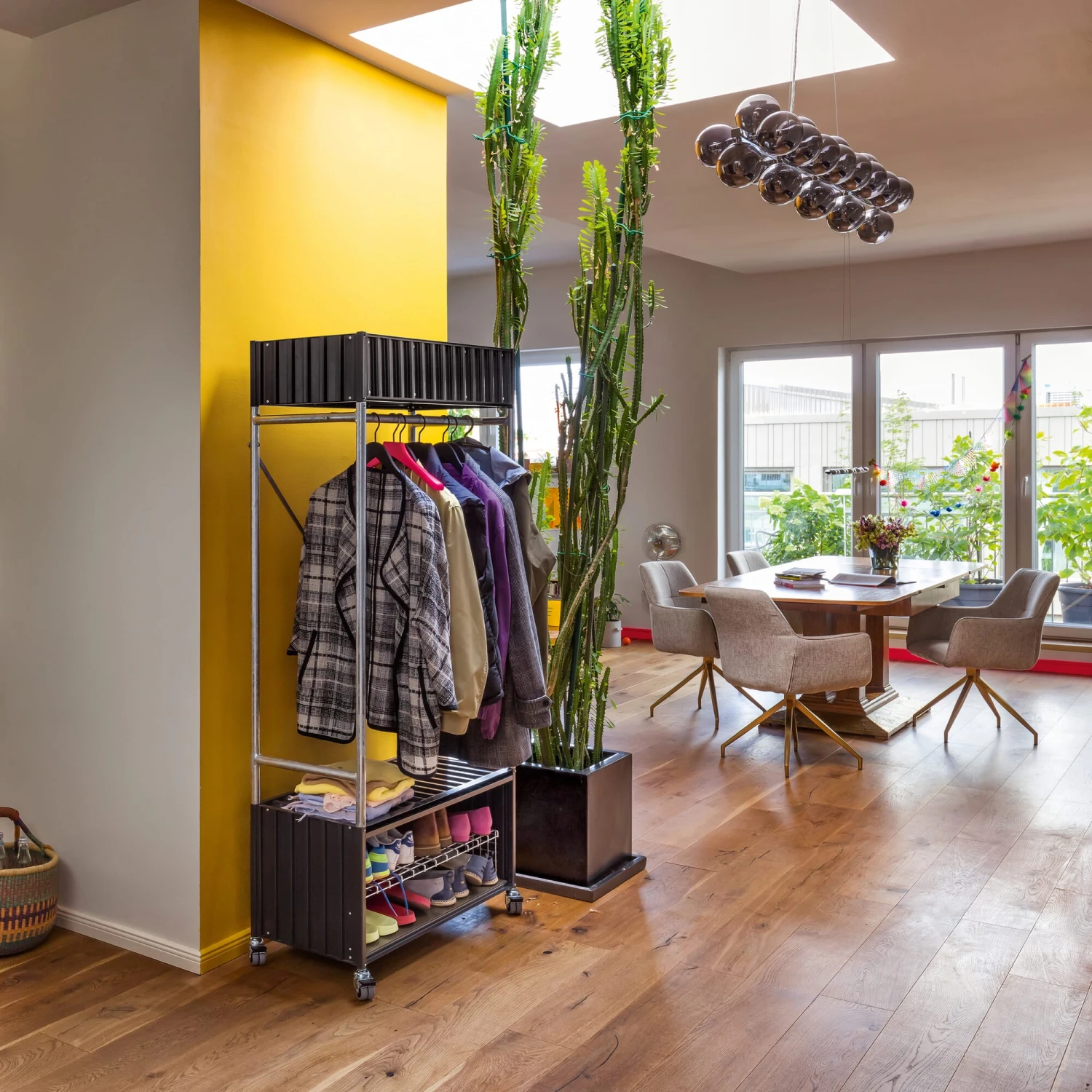 De grote: Een heel bijzonder meubel met eigen gebruiksmogelijkheden is de CONTAINER DS PLUS. Het kan staand worden gebruikt en dient als lockerachtige kleding- of garderobekast en kan ook als grote kast worden gebruikt, afzonderlijk of op elkaar gestapeld in de keuken, op kantoor of op andere plaatsen. Net als alle andere zustermodellen kan deze grote kast worden gestapeld met behulp van de meegeleverde vierkante verbindingsstukken. Een kledingstang is bij de levering inbegrepen, een speciaal ontworpen legplank en een dekblad zijn apart verkrijgbaar als accessoires.
