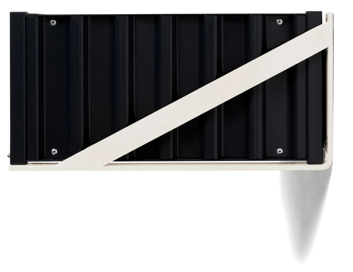 Afmetingen: Buitenafmetingen: B 88 × D 40 × H 19,5 cm, Binnenafmetingen: B 84 × D 36 × H 13,5 cm, Kabeldoorvoer: Ø 4 cmGewicht: 14,5 kgMateriaal: Buisstaal; plaatstaal, gepoedercoatOntwerp: Kuno Nüssli