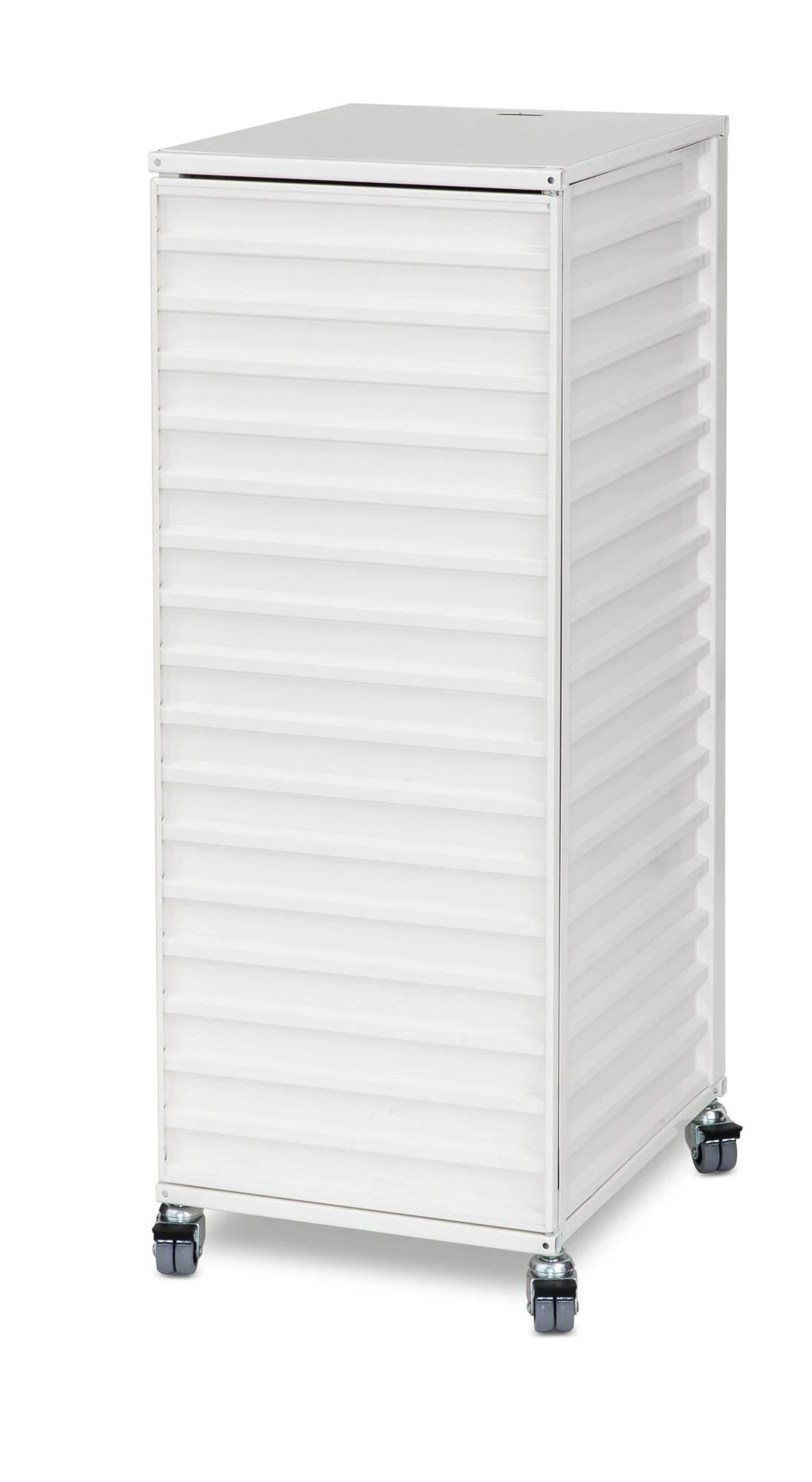 Synoniem voor opslag en transport: de container in zijn oervlak van gevouwen staal. Wij bieden dit kastmeubel in de geminiaturiseerde vorm van de overzeese container aan in vier verschillende uitvoeringen. Deze goed geproportioneerde opbergboxen dienen vele doeleinden en toepassingsgebieden. Alle containers hebben perforaties in de bodem om kabels door te voeren. Zowel de klassieke container als de platte en kleine containers hebben deuren die aan de bovenkant van de bak scharnieren, die bij het openen in de bovenkant van de bak schuiven en zo bijna volledig verdwijnen. De CONTAINER DS PLUS staat rechtop en heeft een conventionele scharnierende deur aan de zijkant.