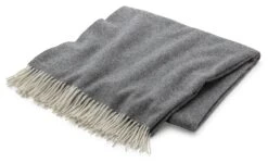 100% scheerwol. Fijnheid vezel 21 micron. 130 × 190 cm incl. de franjes van 9 cm. Gewicht 600 g.