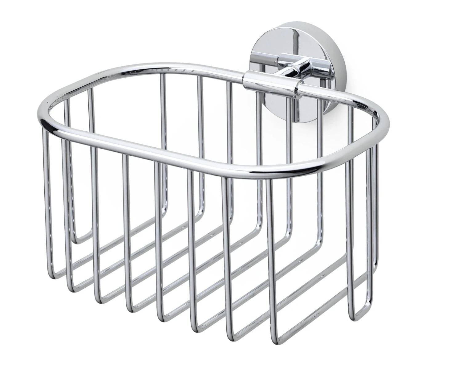 Gemaakt van verchroomd messing. Mandje 8,1 cm hoog. Totaal H 10,4 x B 16,2 x D 13,6 cm. Gewicht 380 g.