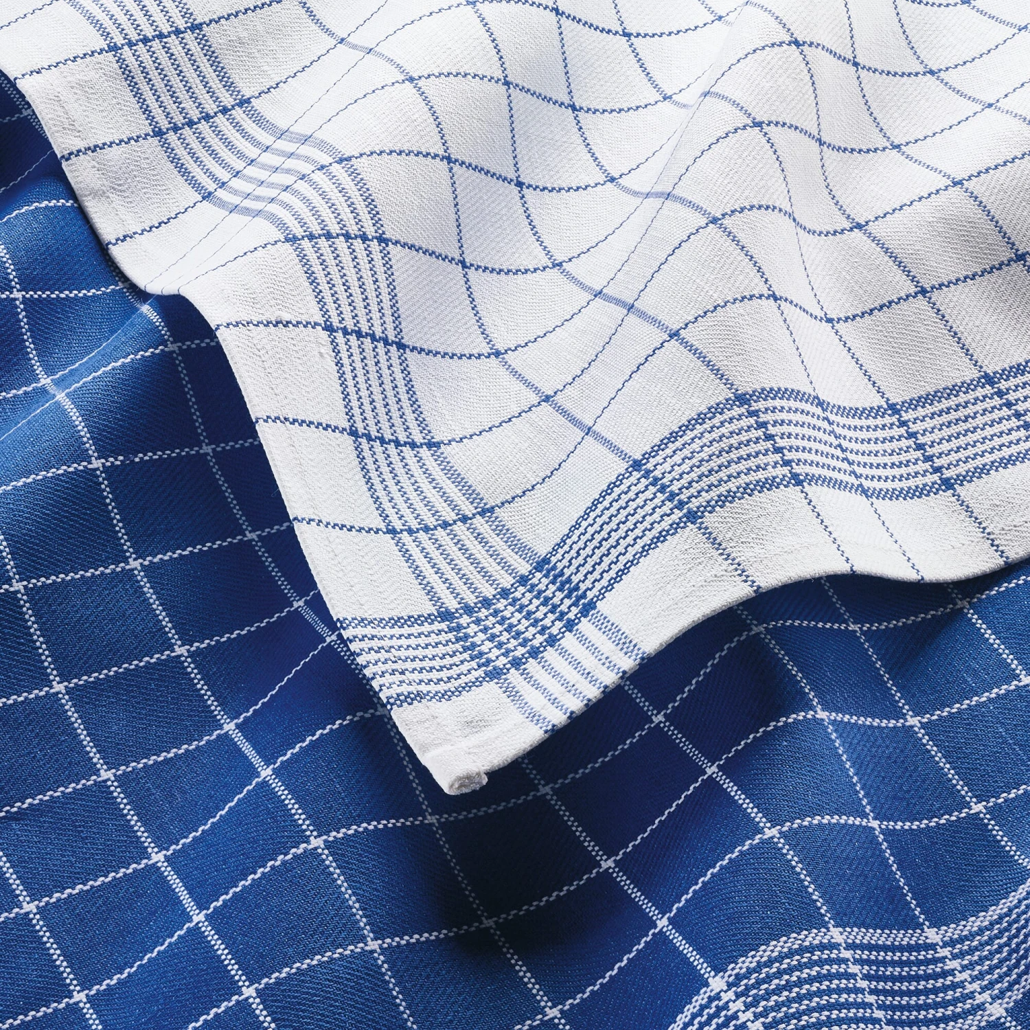 Met de korte formule “Trockenperle – das Schnelltrockentuch” (droge parel – de sneldrogende doek) werd deze gedraaide doek al in 1937 aangeprezen vanwege zijn bijzondere weefwijze, die het grootste absorptievermogen en de snelste herdroging oplevert: gedraaid katoengaren in de schering en linnengaren in de inslag worden geweven in een meerdraads keperbinding. Wij bieden het aan in twee kleurstellingen: met een witte achtergrond en blauwe strepen (wit-blauw) en met een blauwe achtergrond en witte strepen (blauw-wit).