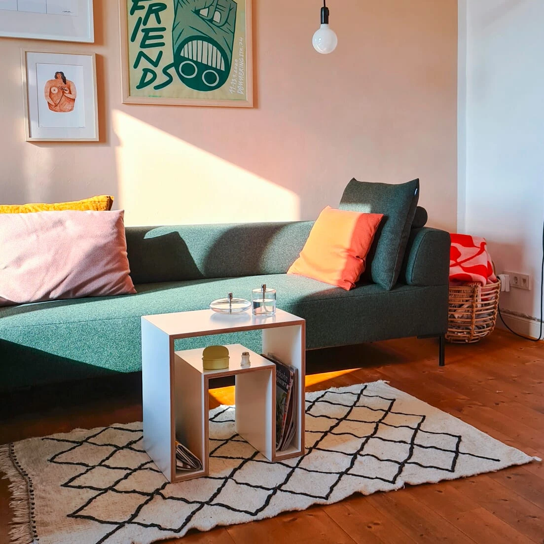 Hoogwaardig vervaardigd klein meubel: ECHO dient als tafel in de gang, woonkamer en slaapkamer. De verschillend grote planken van deze bijzettafel bieden ruimte voor allerlei spullen. De kwaliteit van het vakmanschap blijkt uit de acht keurig in verstek gezette hoeken.