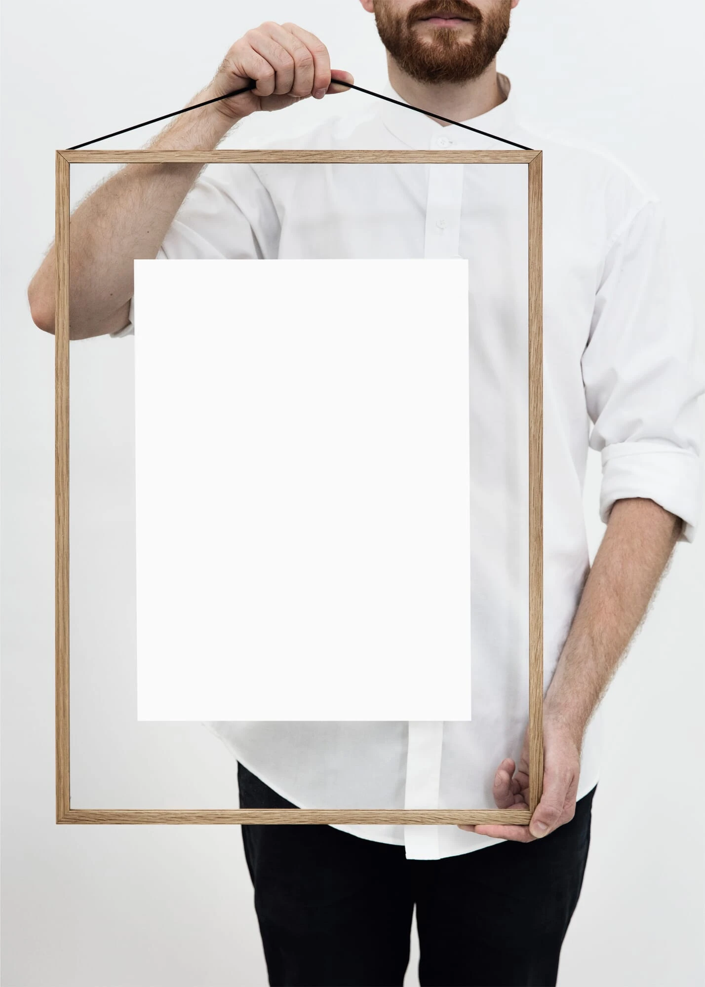 Een frame, meer niet. Teruggebracht tot zijn pure vorm en bestaande uit twee acrylglasruiten, vier stroken onbehandeld eikenhout en een rubberen band. De hoogwaardige onderdelen zijn eenvoudig te monteren en worden alleen vastgehouden door het robuuste elastiek, dat ook als ophangvoorziening dient. De lijsten, die verkrijgbaar zijn in vier maten, kunnen kruislings en rechtop worden gebruikt als microscoopglaasjes of ook conventioneel als fotolijstjes.