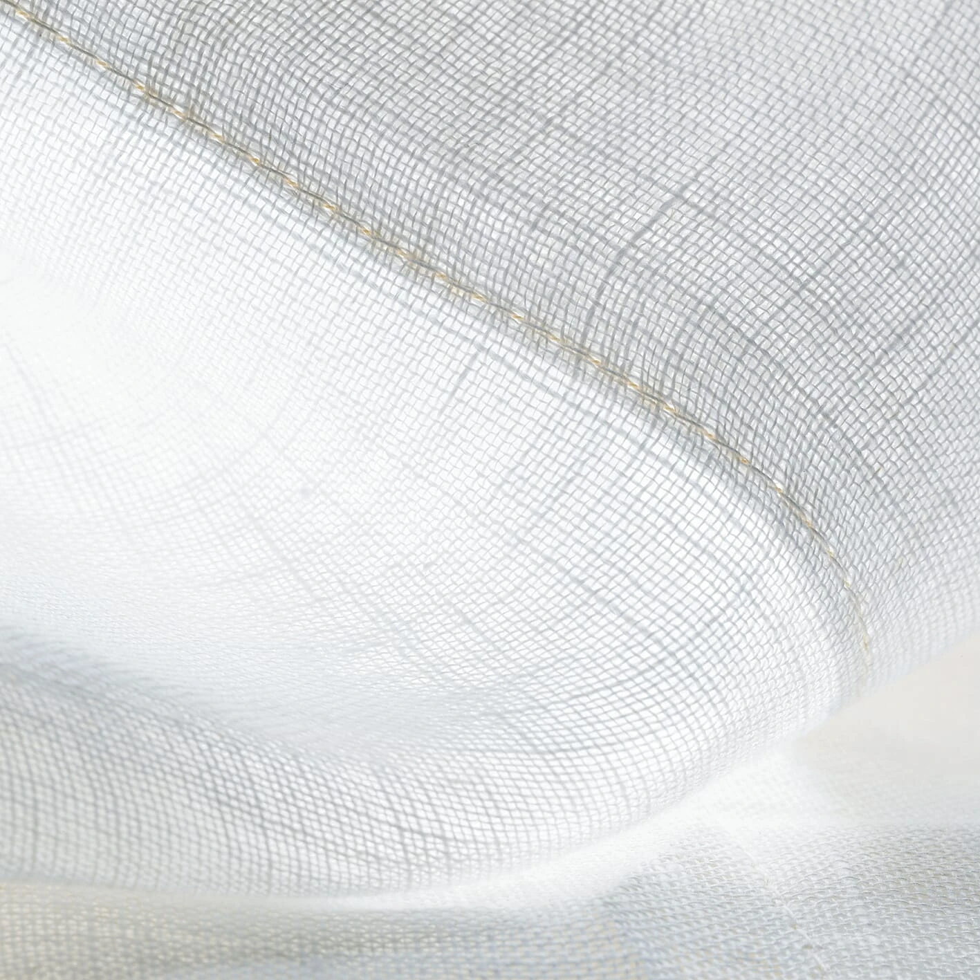 Een gordijn in volle vensterlengte van een buitengewoon lichte linnen voile kwaliteit. Het materiaalgewicht van linnen voiles ligt gewoonlijk tussen 140 en 160 g/m², maar ons gordijn heeft een materiaalgewicht van slechts 104 g/m² en een garengetal in schering en inslag van slechts Nm 36. Het heeft dus het typische heldere weefsel van een voile met een bijzonder delicate transparantie. De canvasgebonden stof met zijn fijnkorrelige gevoel en karaktervolle structuur valt zacht en produceert een al even zachte modulatie van het licht. Het gordijn is kant-en-klaar en verkrijgbaar in verschillende hoogtes. Alle randen zijn gezoomd.