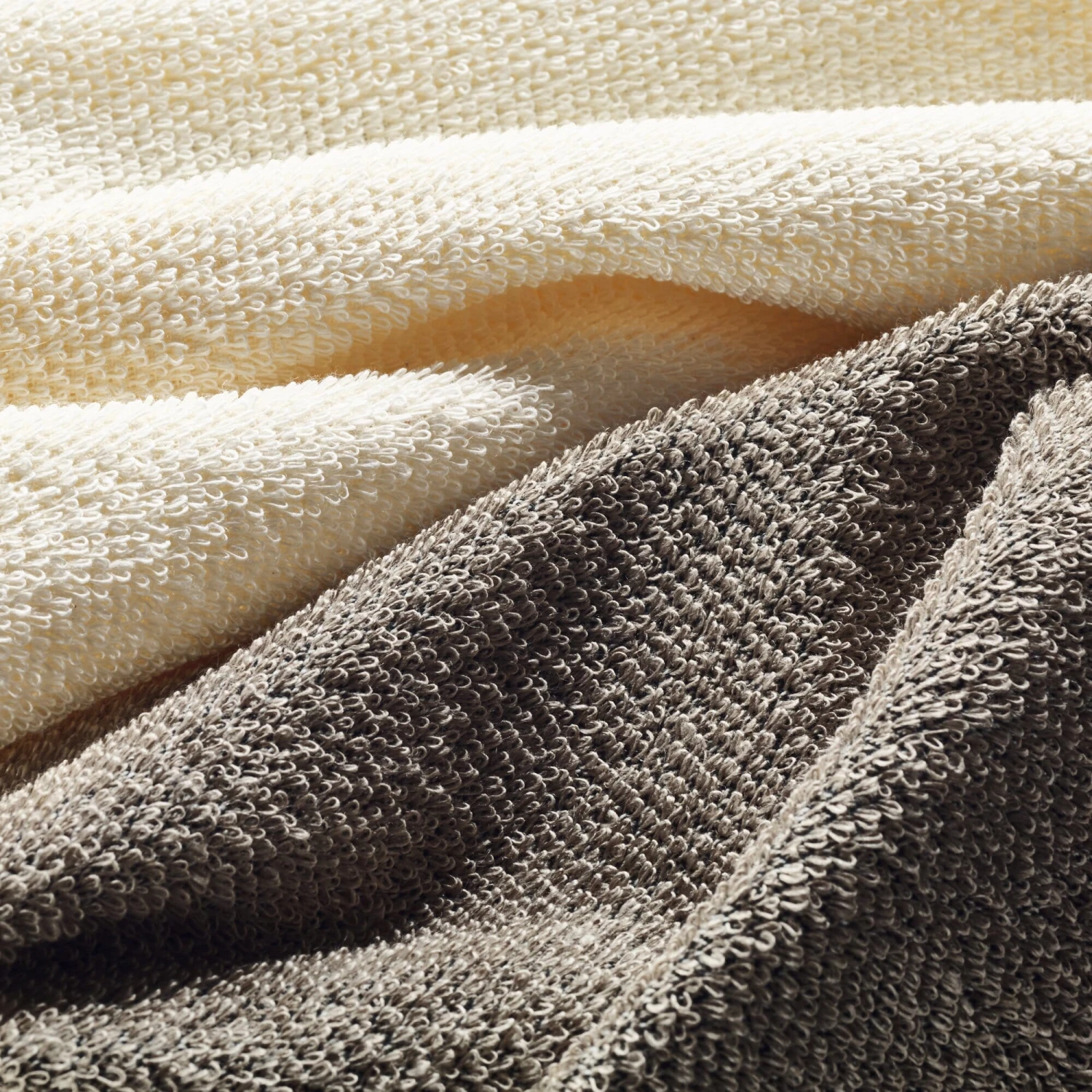 Echte badstof is een driedraads lusbinding (gemaakt van ketting, inslag en lus), die veel volumineuzer en absorberender is dan de enige badstofachtige tweedraads (alleen ketting en inslag) badstof vanwege de derde (lus)draad. Omdat er verschil van mening bestaat over handdoeken en wij zowel degenen die van de zachte handdoek houden als degenen die van ruigere goederen houden tegemoet willen komen, bieden wij badstof handdoeken in verschillende kwaliteiten aan: Naast twee katoenen badstof handdoeken, waarvan de ene bijzonder zacht en donzig is en de andere – in de geest van het beste hotellinnen – volumineus en toch korrelig aanvoelt, presenteren wij een slijtvaste linnen-katoen kwaliteit die je vandaag de dag zelden vindt.