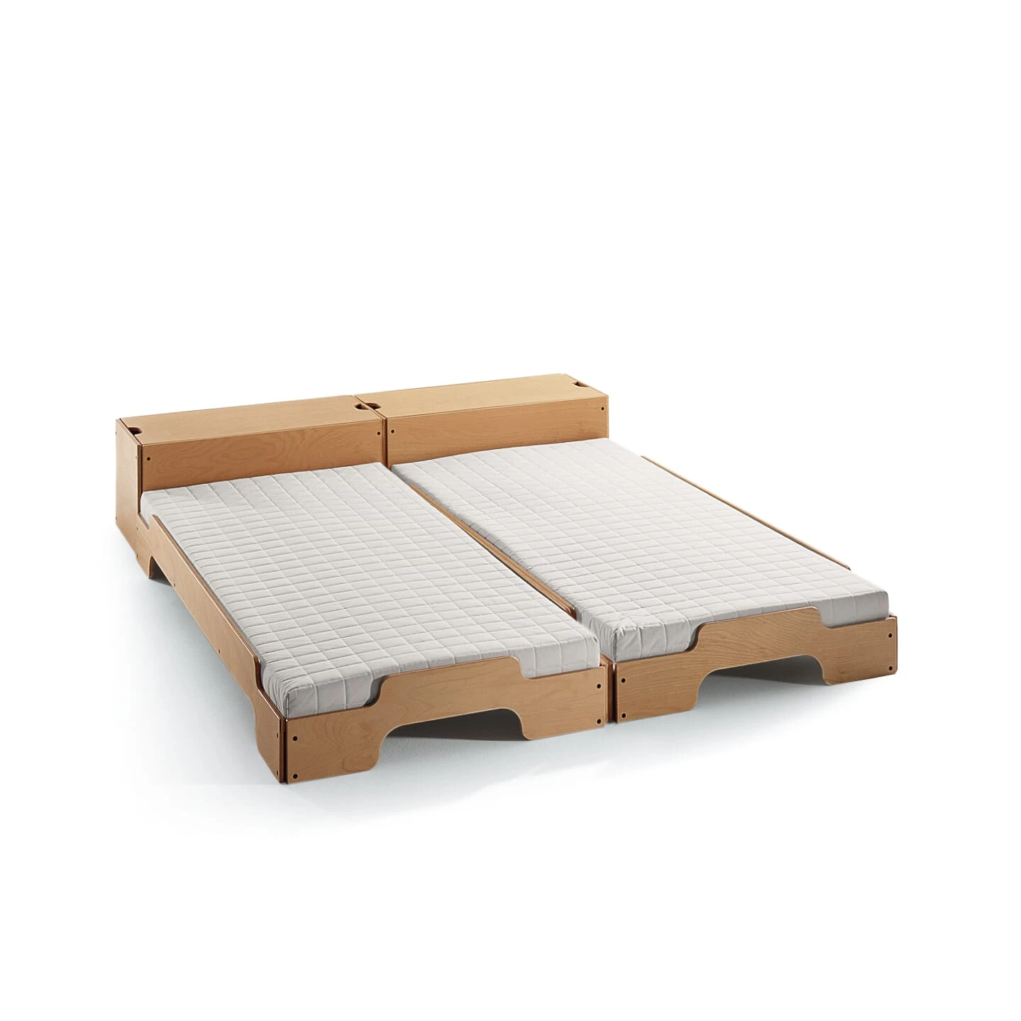 Voor matrassen van 90 x 200 cm (voor de stapelbaarheid mag de matras niet hoger zijn dan 10 cm – of 14 cm voor de comfortversie. Levering 1 bed, zonder lattenbodem, matras, bolster en bedbodem.