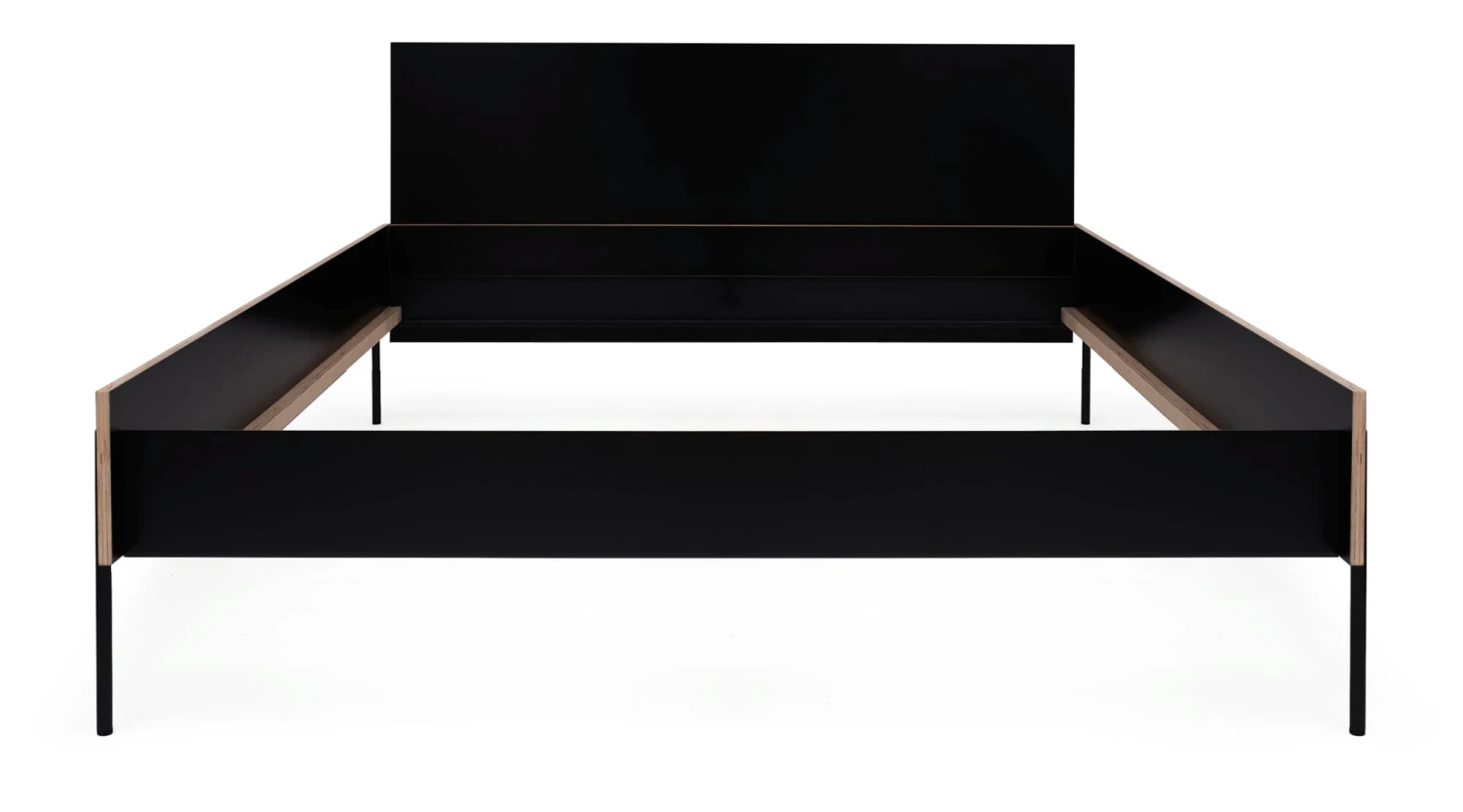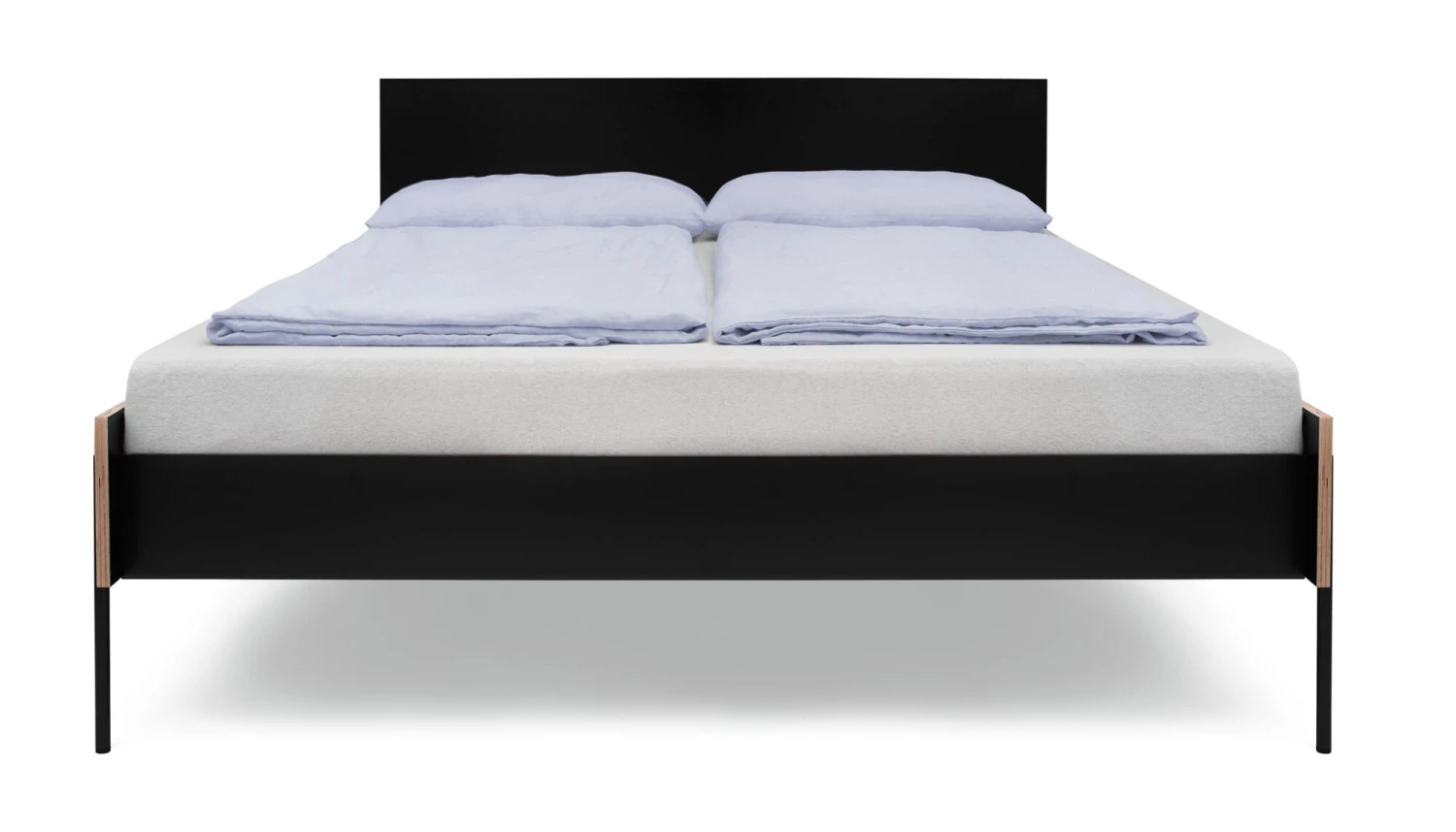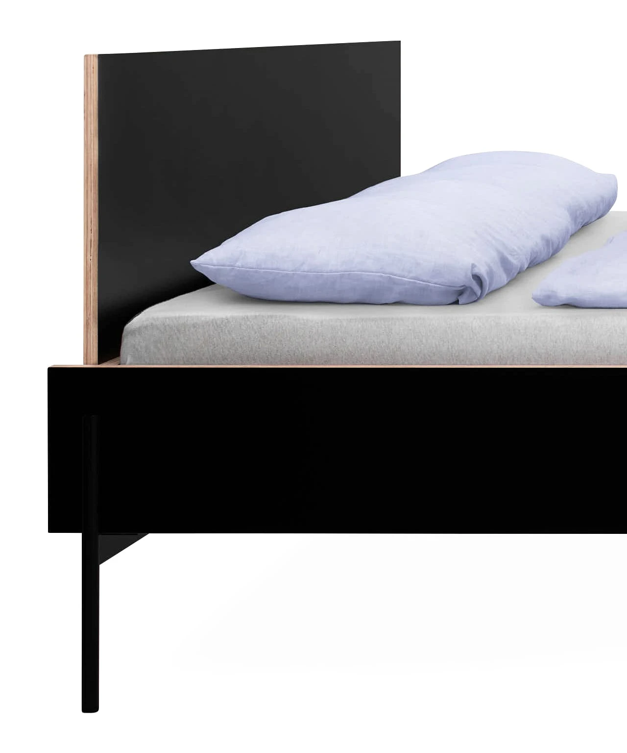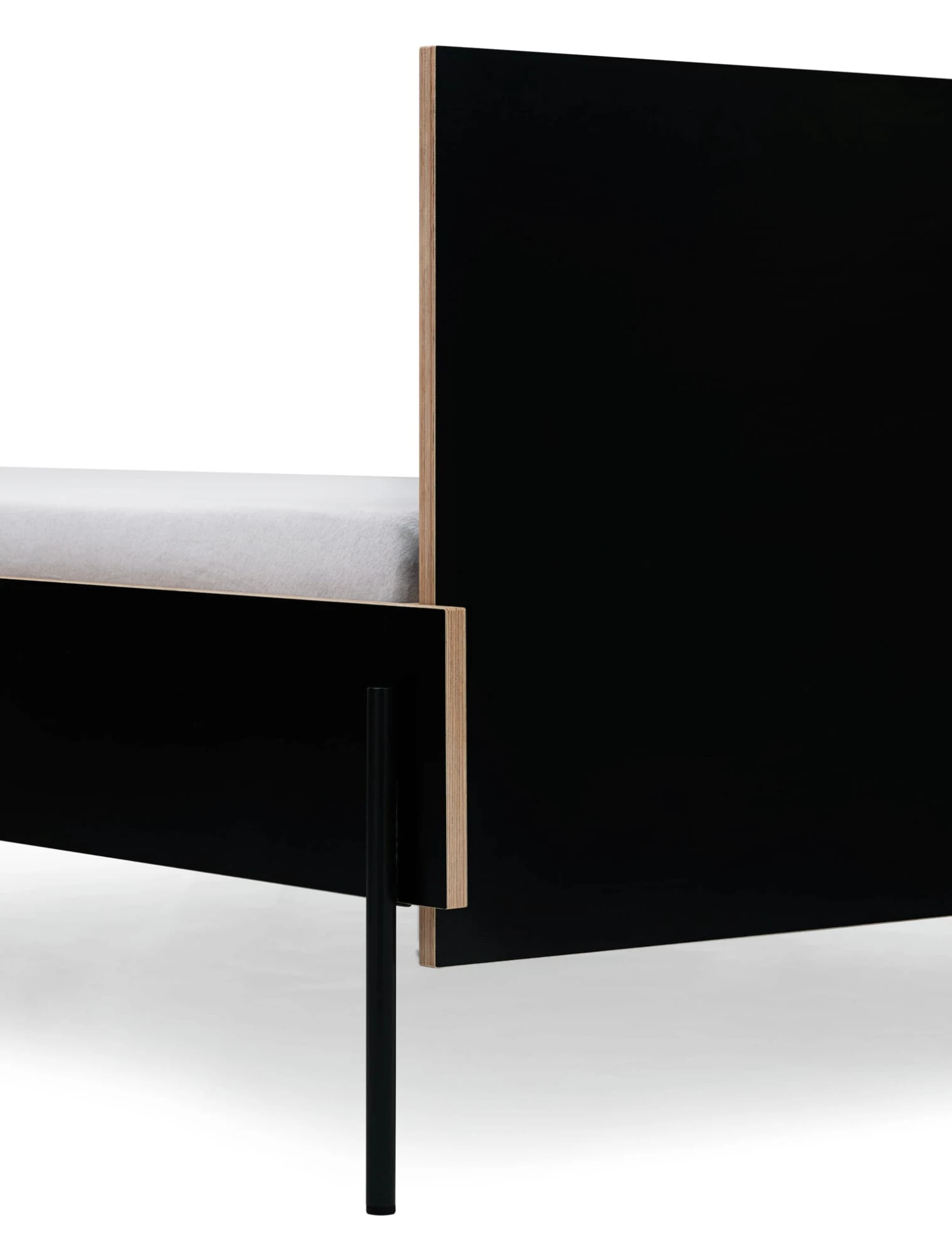 Het hoofdbord van zwart gecoat berkenmultiplex voor het HANS bed. Het kan zonder gereedschap aan het stalen frame aan de kopse kant worden bevestigd.