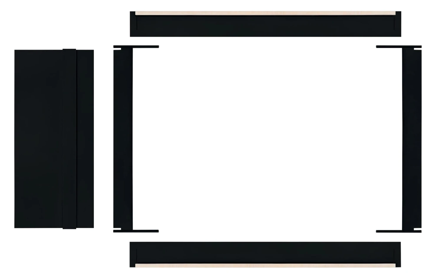 Materiaal: Berkenmultiplex (herkomst: Oost-Europa), 18 mm, zwart fenolhars aan beide zijden gecoat (kleur- en structuurverschillen en af en toe kleine druksporen zijn mogelijk bij multiplexpanelen afkomstig uit de carrosseriebouw)Design: Juliane Lanig en Moritz Philip Schmidt
