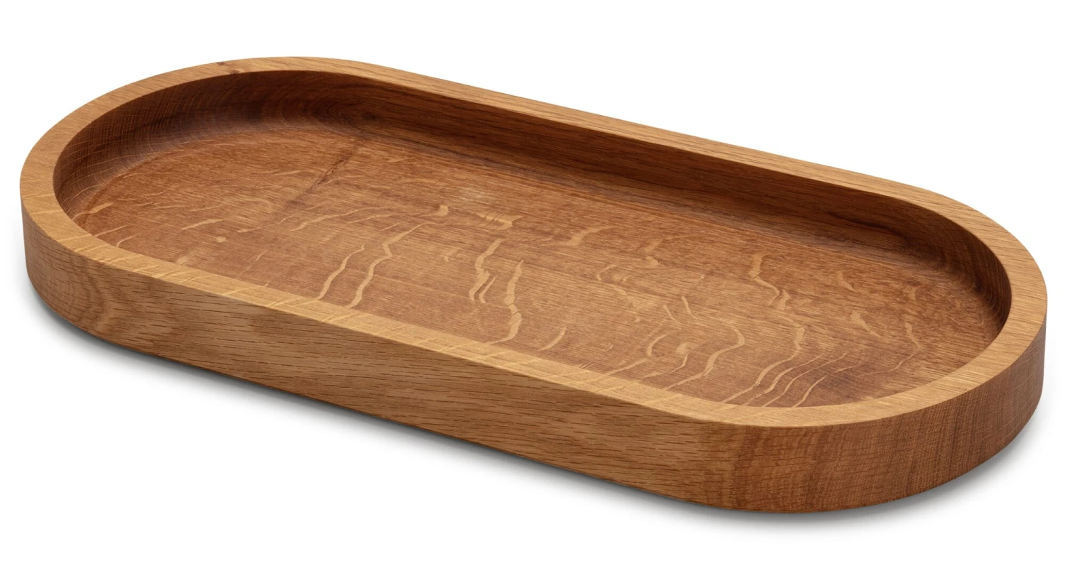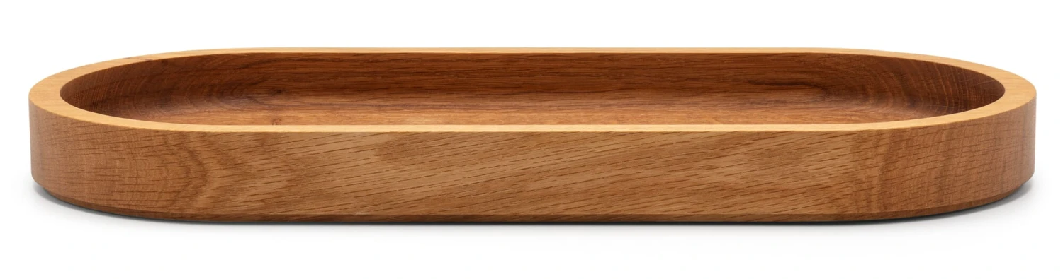 Nu werken nog maar weinig mensen uitsluitend met massief hout. Voor Konrad Horsch, een meubelmaker uit het Sauerland, is het nog steeds vanzelfsprekend. Naar ontwerpen van ontwerpster Laura Blanke bewerkt hij de hier gepresenteerde schalen uit massief eikenhout met behulp van een freesmachine. Freeswerk is kostbaar en kostbaar, omdat het meer tijd en moeite kost dan op het eerste gezicht lijkt om alle bijzonderheden van het materiaal te bewerken en de natuurlijke nerf van het hout naar voren te brengen. Konrad Horsch slaagt in dit werk in buitengewone kwaliteit. Het hout, dat met de hand glad is geschuurd, wordt ten slotte geolied, zowel om het oppervlak te verzorgen als om het typische eikenpatroon nog beter tot zijn recht te laten komen. Gebruik de eikenhouten kommen als fruit- of serveerschalen, versier ze met takjes en kaarsen – of geniet gewoon van hun vormelijkheid.