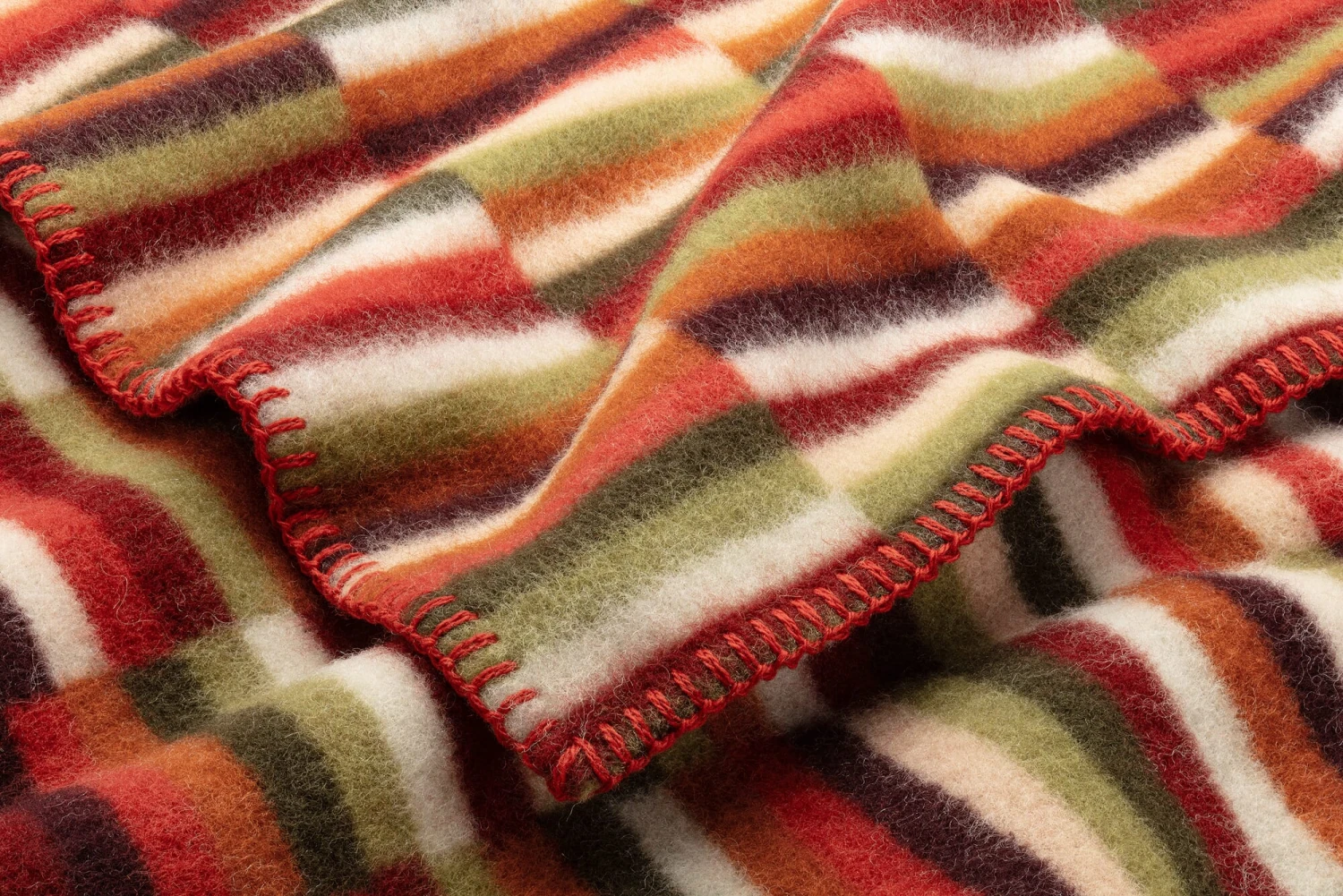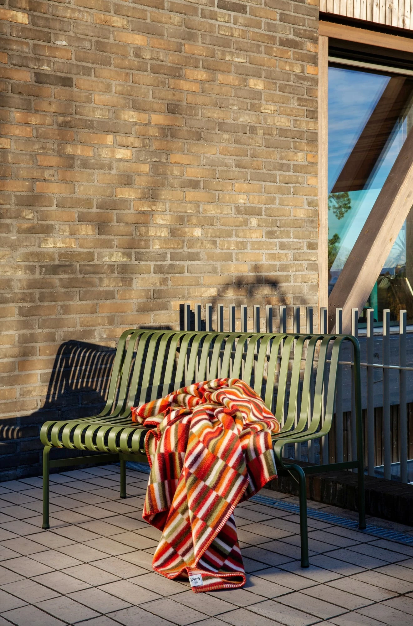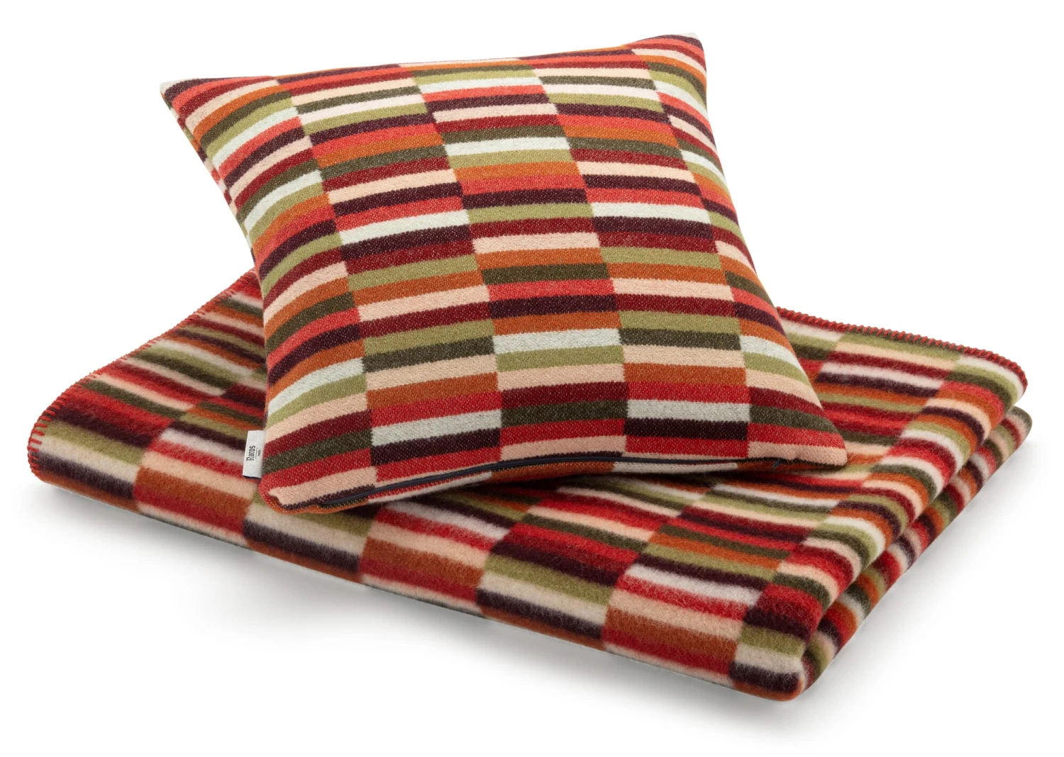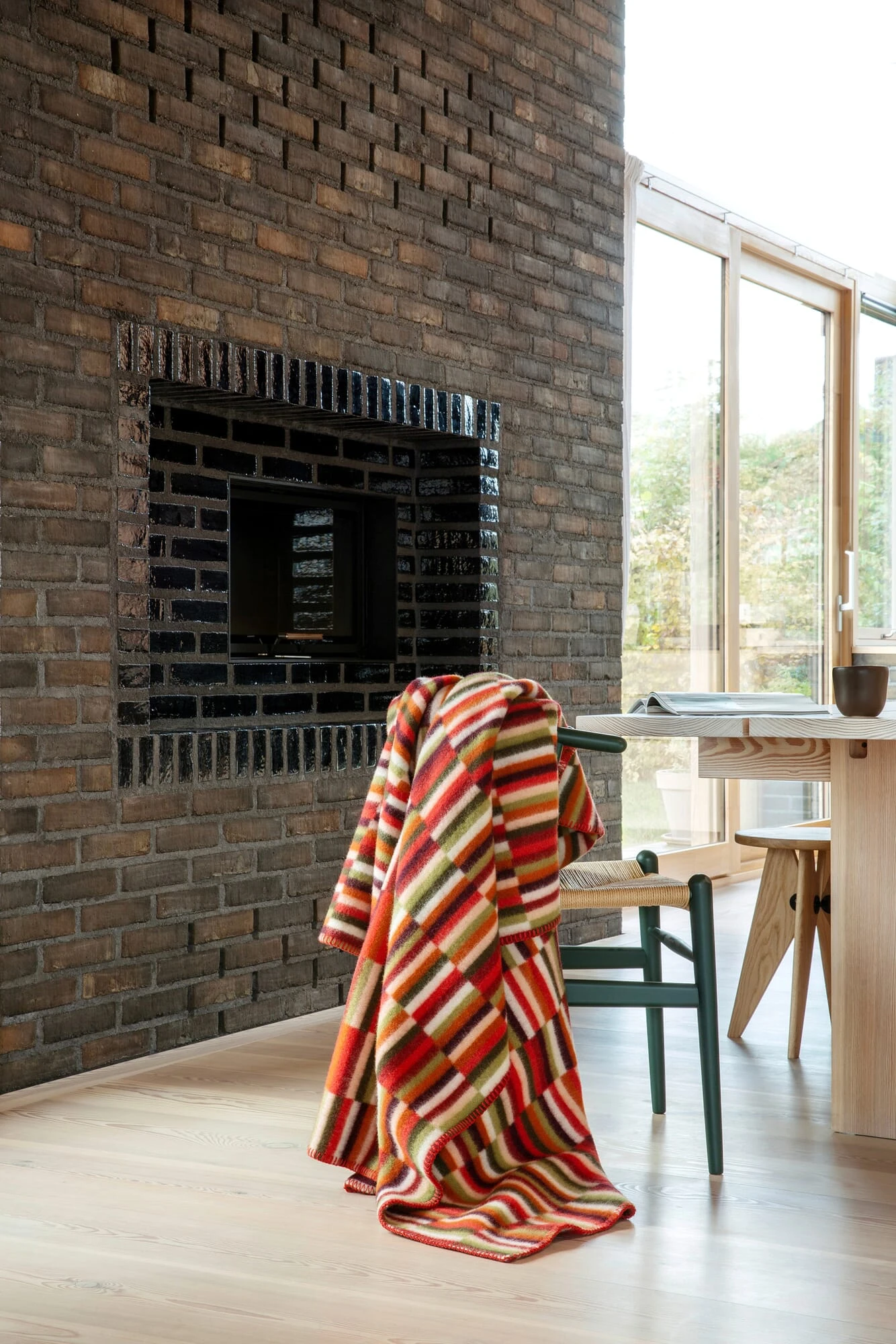 Wij zijn altijd onder de indruk van de trefzekere hand voor stijl en kleurcombinaties in de ontwerpen voor de dekens en kussenhoezen van Røros Tweed. Voor het ontwerp van Ida liet het ontwerpersduo Anderssen & Voll zich inspireren door patchwork-quilts en handgeweven wandtapijten. Het uiteindelijke patroon werd op schaal gemaakt van gekleurd papier, zodat sporen van het handwerk achterbleven en hun weg vonden naar het geweven patroon. Het resultaat is een eerder kleinschalig, grafisch patroon dat dankzij de onnadrukkelijke, perfect op elkaar afgestemde kleuren in gedempte tinten of pastels een rustig totaaleffect heeft, maar toch een mooi kleuraccent op de bank vormt. De kleuren zijn bovendien zo gekozen dat ze overeenkomen met die van andere dekens en kussenovertrekken van Røros Tweed. Voor de zachte wollen stof gebruikt Røros Tweed Noorse lamswol in de gebruikelijke zachte, soepele kwaliteit. De oppervlakken van de stof zijn extra geruwd, waardoor de toch al soepele, warme lamswol nog zachter en volumineuzer wordt en nog meer warmte-isolerende lucht kan vasthouden.