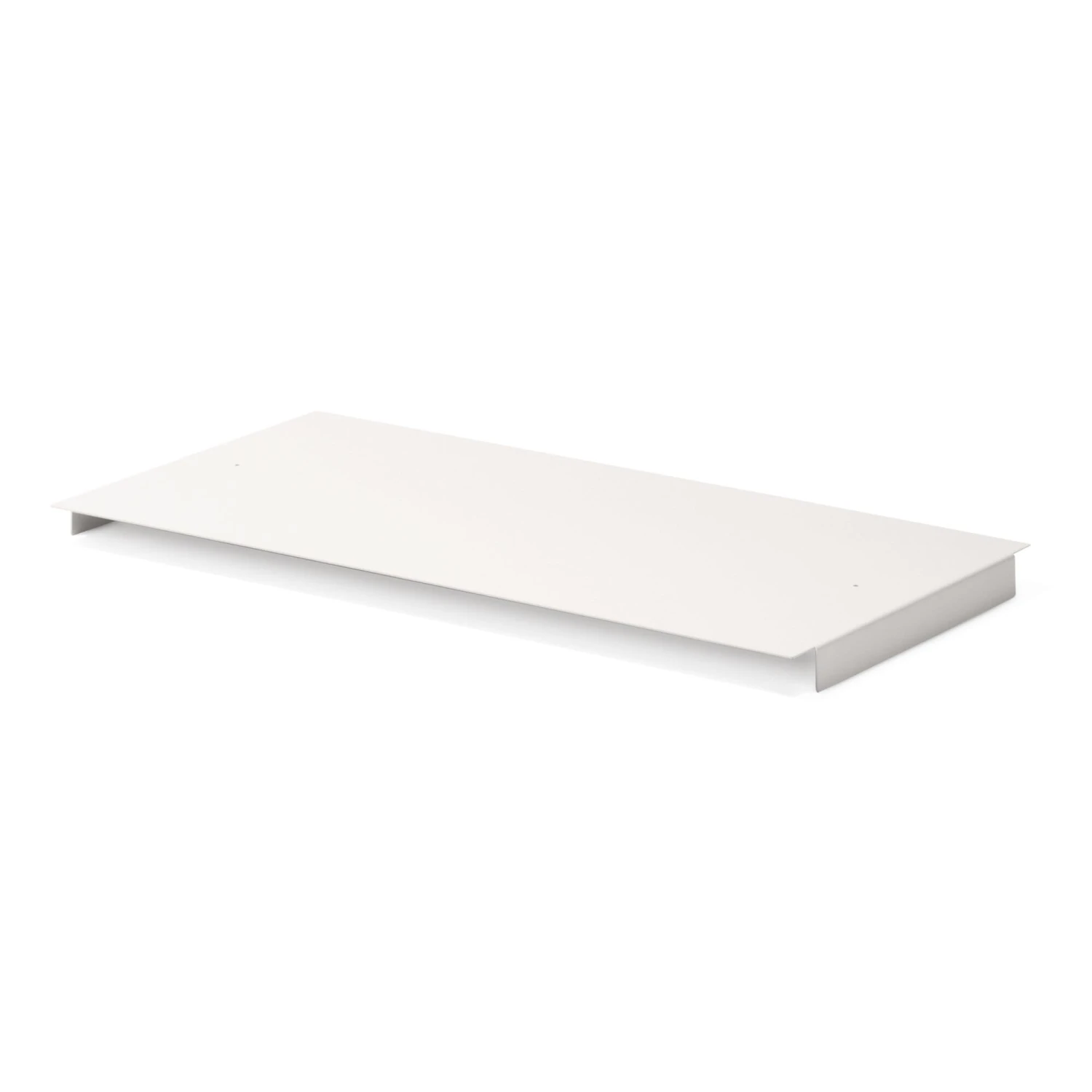 De afzonderlijk te bestellen inzetstukken zijn gemaakt van 1,5 mm dik, crèmewit gepoedercoat plaatstaal. De boekenplanken (met zijdelingse opstaande rand) vullen altijd de volledige breedte van het rek; vlakke planken en de trays daarentegen zijn verkrijgbaar in volle breedte (1/1) en in 2/3 breedte. De twee dozen (een van 11 cm, een van 22 cm hoog) vullen elk 1/3 van de plankbreedte. De inzetstukken kunnen in elke combinatie in het rekframe worden gehangen en worden “gevangen” door precies passende vouwranden. Ze zijn niet vast en dus kunnen bijvoorbeeld de dozen en hun inhoud uit het rek worden gehaald en naar de werkplek worden gedragen. Alle inserts zijn gemaakt van plaatstaal en zijn magnetisch – en kunnen worden gebruikt om kamerspecifieke boodschappen te bevestigen.