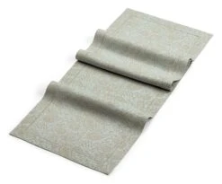 Met een edele glans en zoom. Jacquard geweven tafelloper