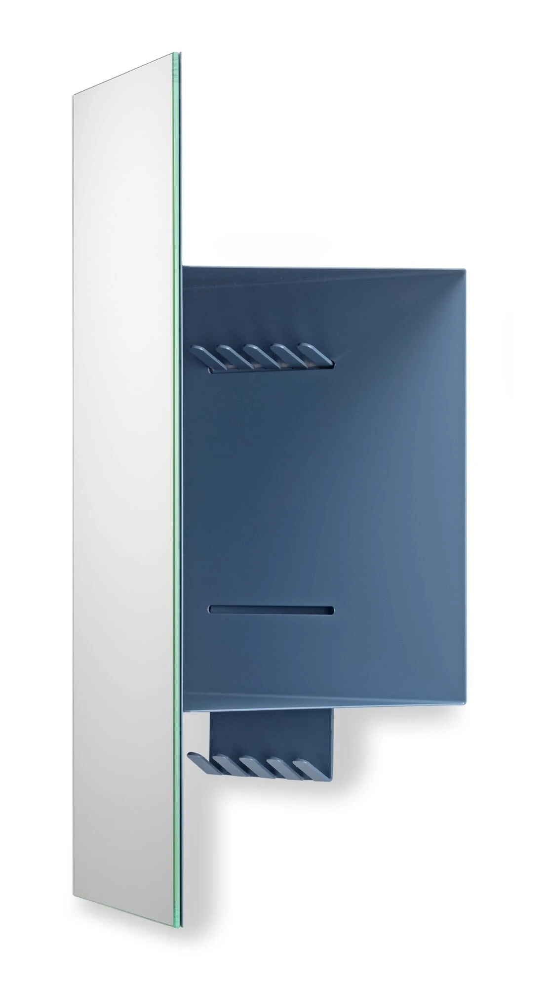 Afmetingen: B 30 x D 13,5 x H 50 cmGewicht: 3,5 kgMateriaal: plaatstaal, poedercoating; spiegelglasDesign: Ran Mo