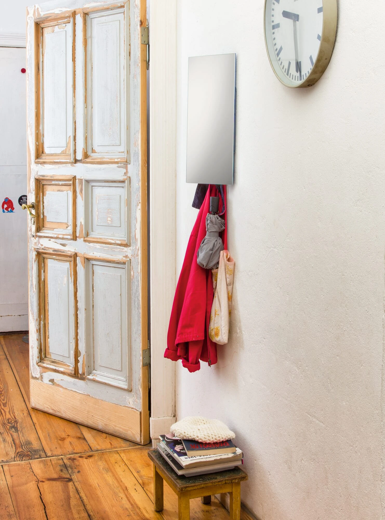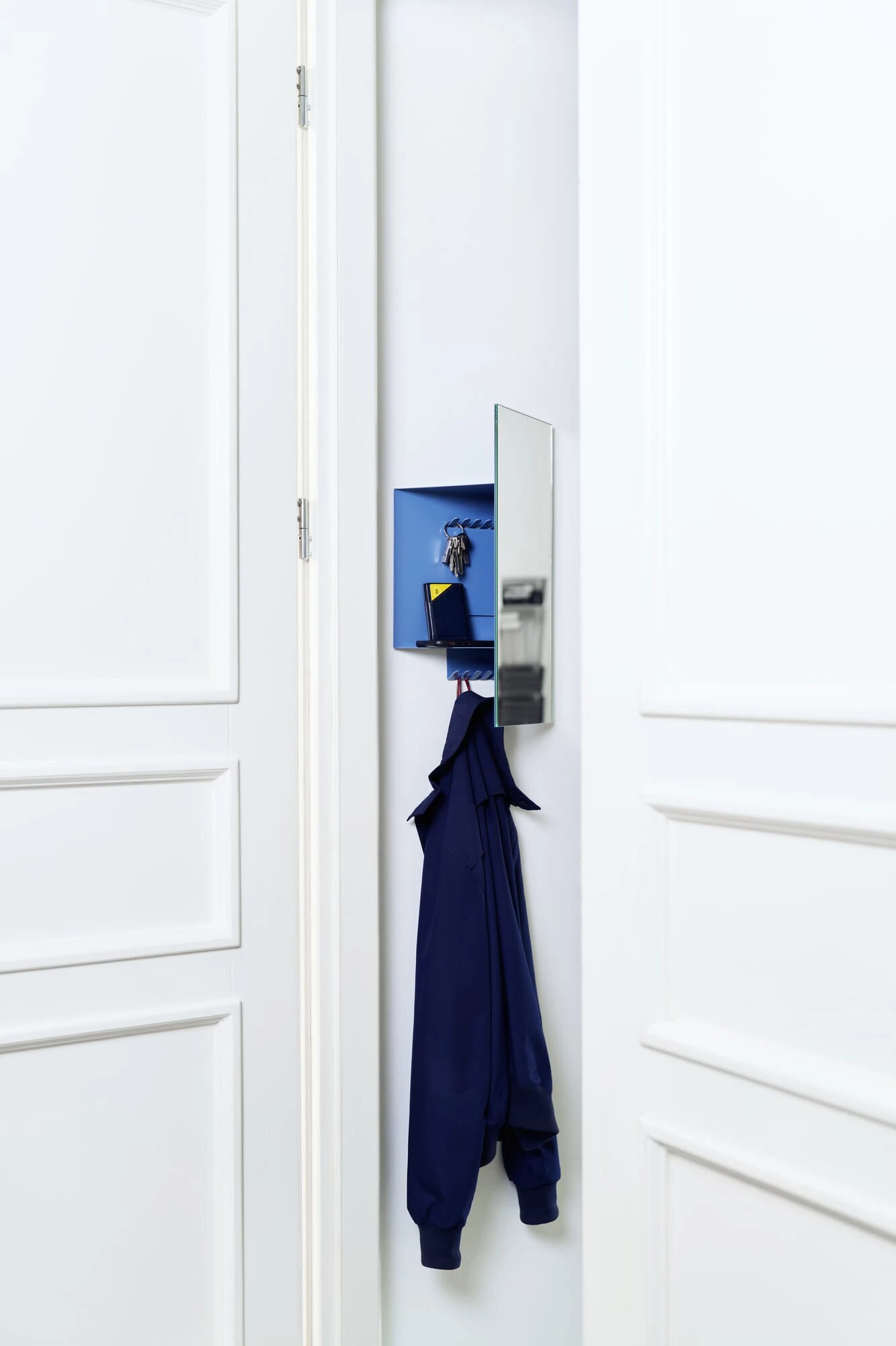 In zekere zin markeert JANUS – net als zijn naamgenoot, de Romeinse god Janus – uitgang en ingang. Het is de spiegel in de gang voor de controlerende blik voor het verlaten van het huis. En het is de plank voor het keukengerei bij thuiskomst. Het kleine meubel met twee gebruiksmogelijkheden heeft een stalen behuizing, is eenvoudig te monteren en is voorzien van planken en haken. Schuin naar het spiegelblad toe biedt het plankje de ruimte die in de gang zo vaak wordt gebruikt voor de smartphone en de sleutelbos, notities en tasinhoud. JANUS is een ontwerp van de Chinese ontwerper Ran Mo en maakte deel uit van het project “Van binnen naar buiten” aan de Hochschule der Bildenden Künste Saar, dat werd begeleid door MAGAZIN. Samen met de ontwerper werd het product ontwikkeld tot het gereed was voor serieproductie en zo zijn weg vond naar ons assortiment.