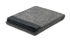 70% katoen en 30% papiergaren. Herkomst VS en Japan. Basisgewicht 360 g/m², voor de badmat 1.200 g/m². Gemaakt in Japan. Kleur gevlekt zwart.