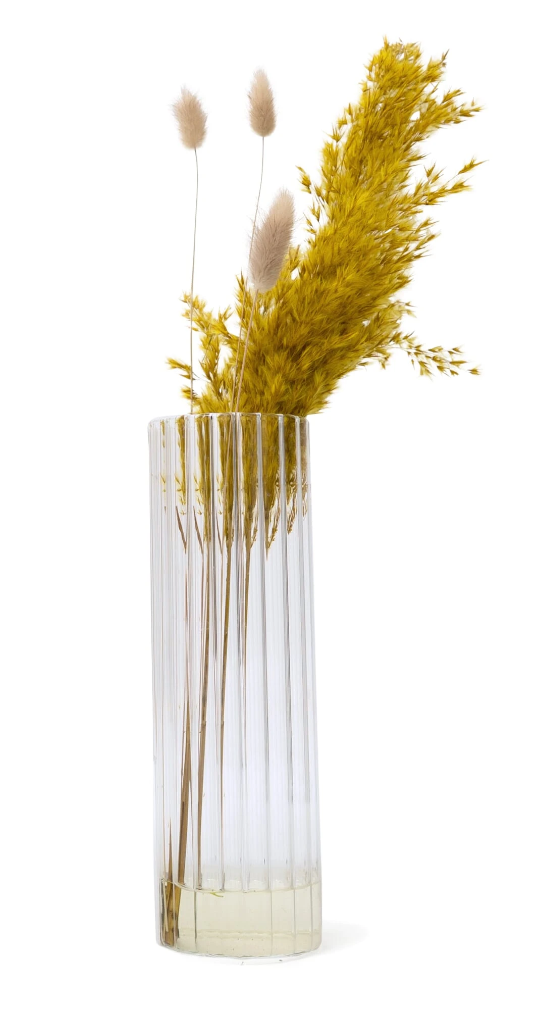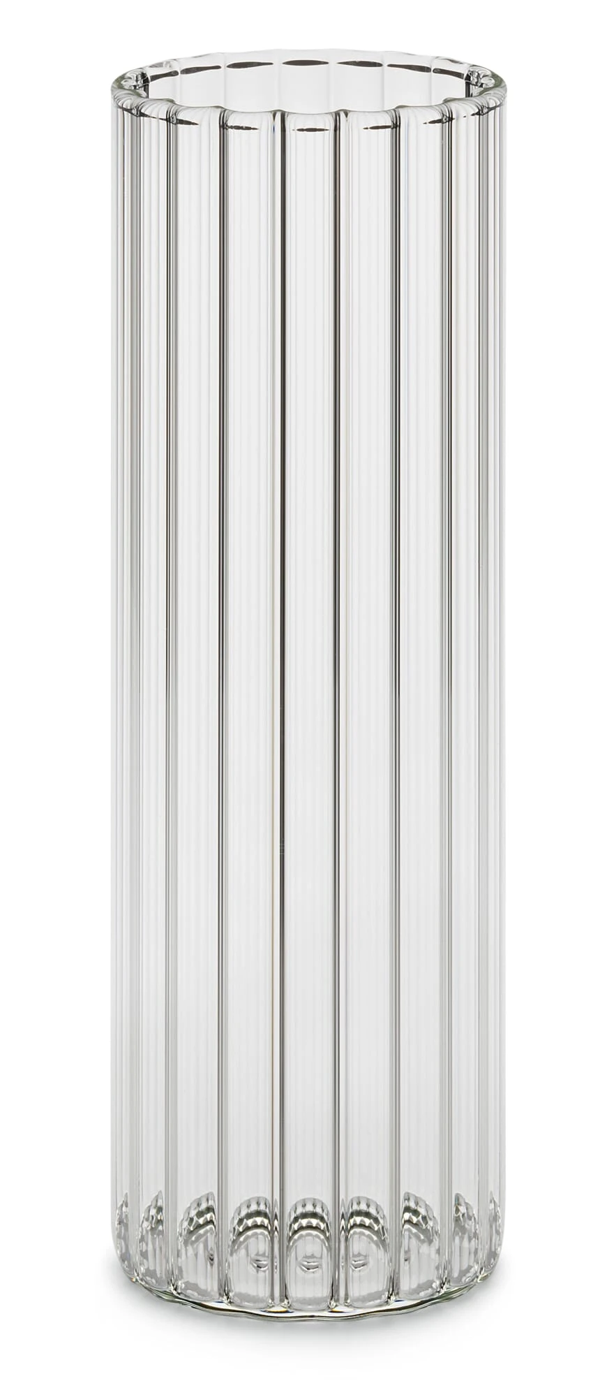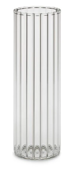 Mooi technisch en met een interessant visueel effect: vazen van gegolfd, industrieel geprefabriceerd borosilicaatglas. De glasstrengprofielen worden met de hand gesneden en verzegeld door het materiaal te versmelten. Door de groeven in de container kunnen bloemen en boeketten goed en stabiel in vorm worden gebracht. Vaatwasserbestendig.