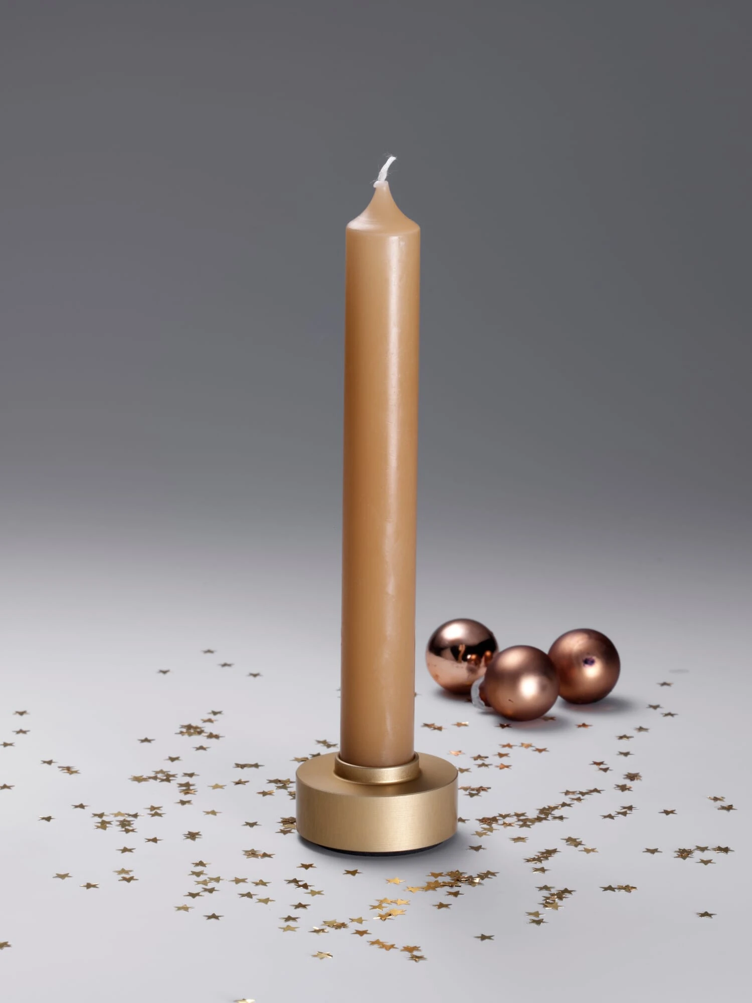 BELL is een eenvoudige, stabiele kandelaar van massief aluminium. Het edele, matte geanodiseerde oppervlak maakt het tot een klein sieraad. Hij kan worden gebruikt voor kaarsen in standaardmaten. De onderkant van BELL is voorzien van een antislipbodem van celrubber, die de bodem beschermt tegen hitte en krassen. BELL kan perfect worden aangevuld met de DRIP druppelvanger uit ons assortiment, die eenvoudig over de kleine kraag van de kandelaar kan worden geleid. Dit beschermt DRIP ook tegen de open vlam. Gemaakt in Duitsland.