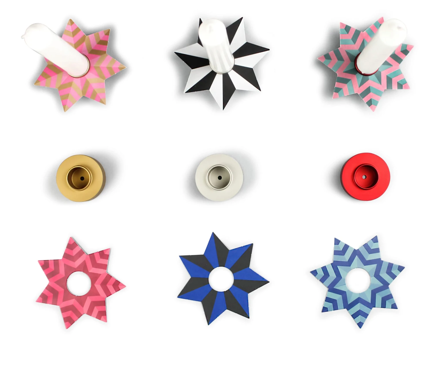 Afmetingen: Ø 4,8 × H 2,5 cmGewicht: 72 gMateriaal: Aluminium, geanodiseerd; celrubberDesign: Angela Schlösser en Karen Olze