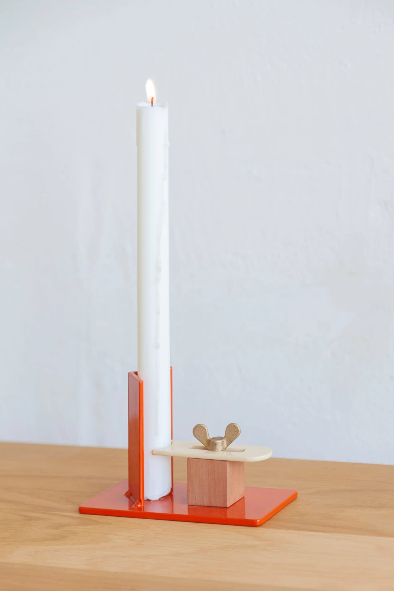Als een speels machientje – FIXUM is een kaarsenhouder van de Nederlandse ontwerper Floris Hovers. En FIXUM is veel meer dan een decoratief en fantasierijk spel van vormen, kleuren en materialen, want de ongewone constructie heeft een functioneel effect: stokkaarsen, zelfs met verschillende diameters, worden veilig en stabiel vastgehouden met de verstelbare schuif.