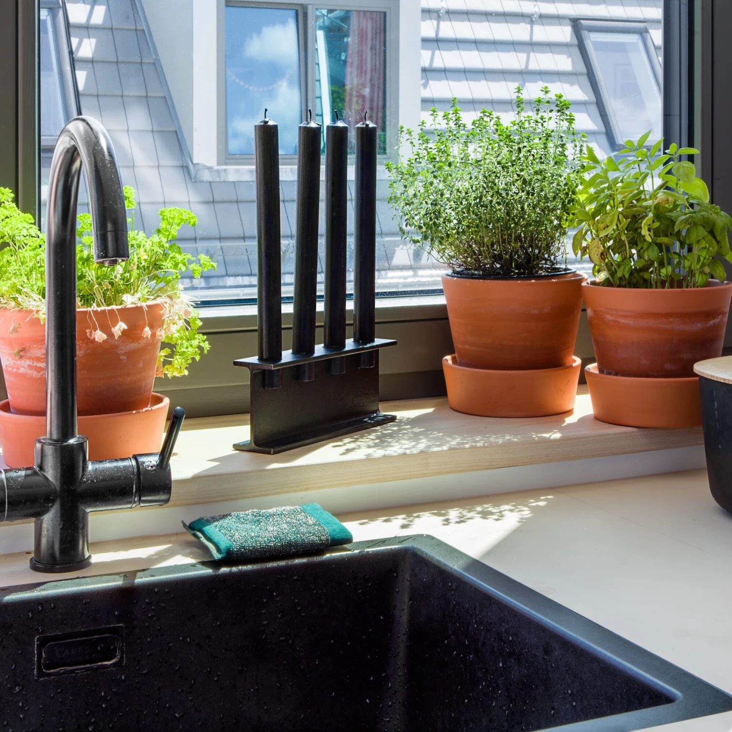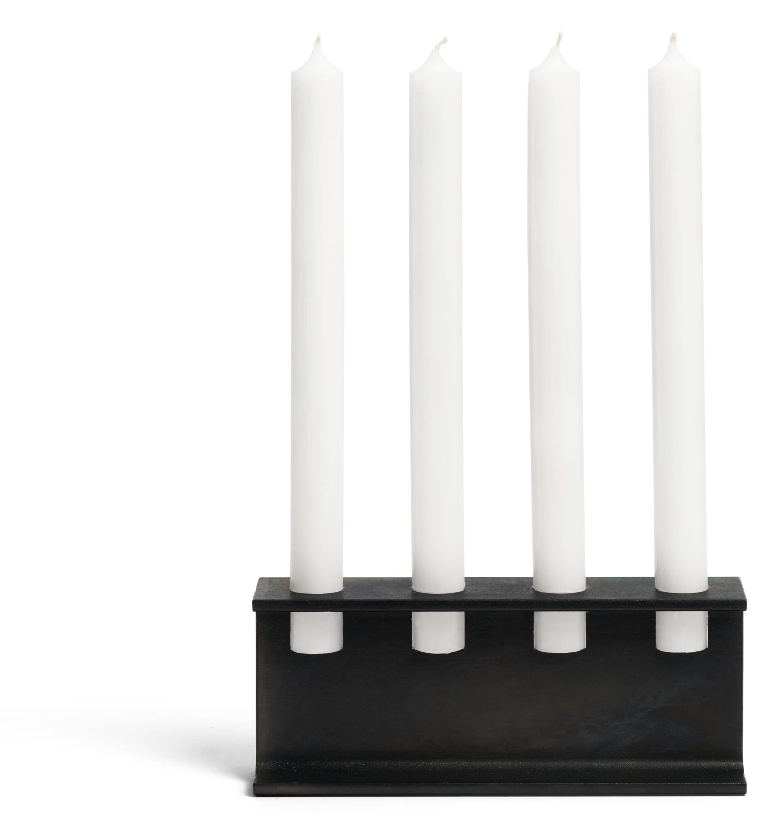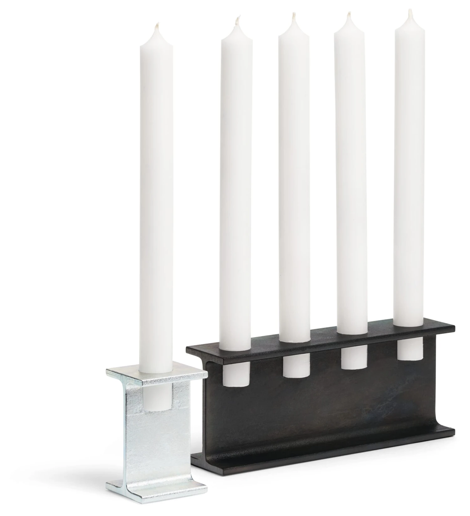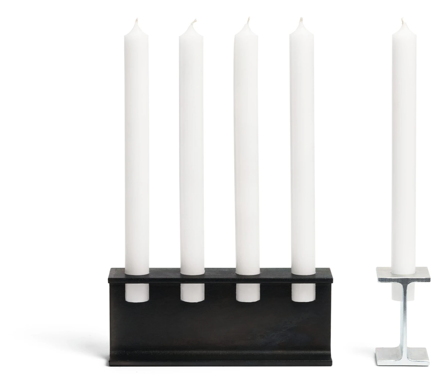 Architectonisch element – mooi object. Een deel van de zogenaamde dubbele T-balk is het gelijknamige onderdeel voor de TETE-kandelaar. In dit product is het krachtige technische materiaal in evenwicht met de goed geproportioneerde vorm. De Zwitserse ontwerpster Charlotte Therre en de ontwerper Joong Han Lee uit Zuid-Korea zijn TIEL en de makers van TETE. We hebben de kandelaar geproduceerd in een Duitse werkplaats voor mensen met een handicap. Technisch klinkt het zo: De sectie van een dubbele T-balk is gefreesd met een blind gat in de diameter van 21,5 mm – dit geeft een in de handel verkrijgbare kaars een veilige standplaats. TETE is verkrijgbaar in twee kleuren. Wij houden van de helderheid en echtheid van dit kleine decoratieve product. Het staal van de steun heeft een levendig oppervlak. Door de galvanische zinklaag ontstaan lichte, kleurrijke nuances – en wordt elke TETE uniek.
