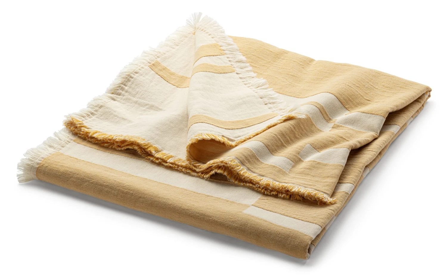 100% katoen. Gemaakt in Portugal. 180 × 130 cm inclusief franjes.