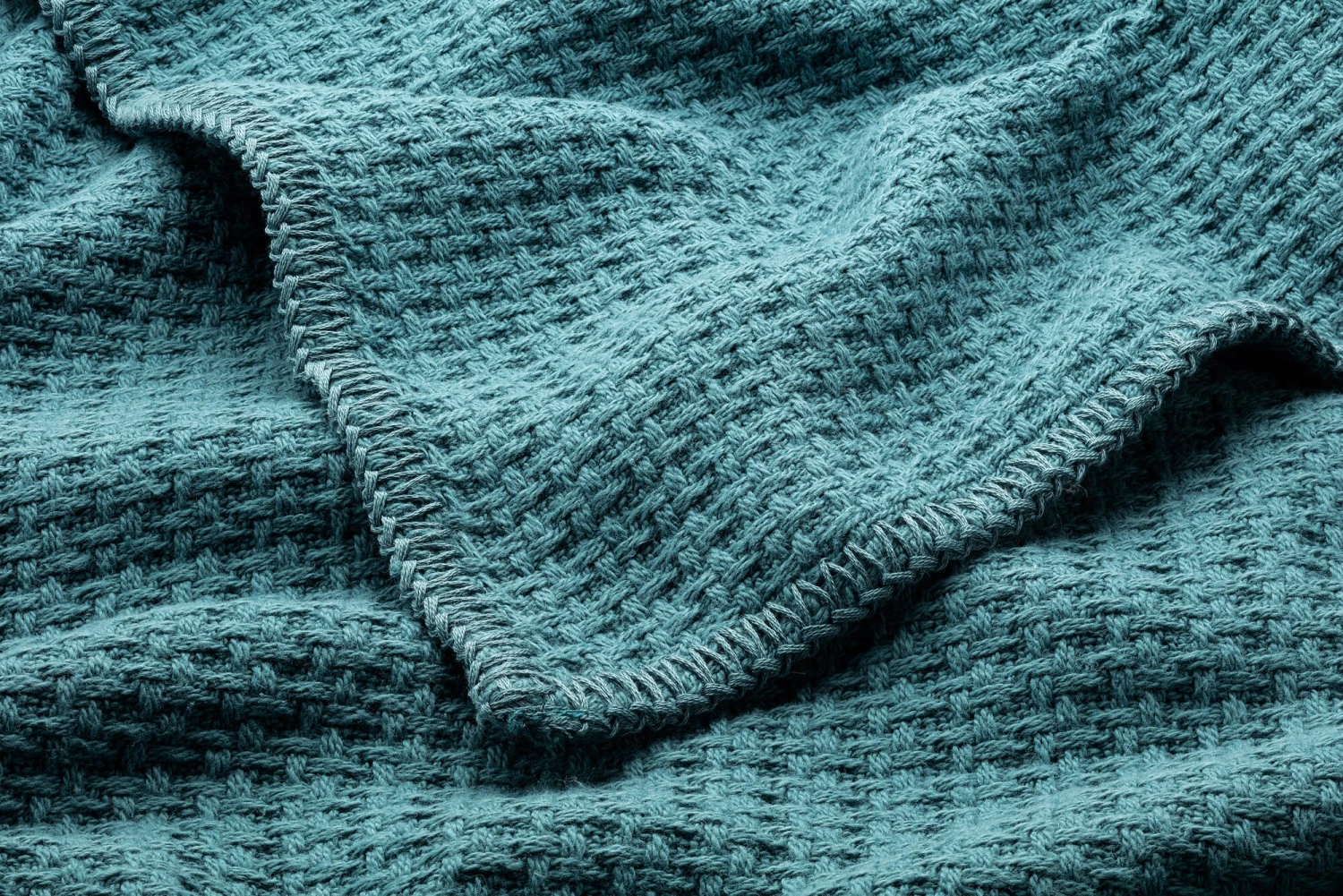 Dekens van katoen worden zeer goed verdragen vanwege hun huidvriendelijke eigenschappen. Katoen is ademend, zacht en krast niet, waardoor het ook bij direct contact met de huid aangenaam aanvoelt. Mensen die gevoelig zijn voor wol stellen katoenen dekens daarom bijzonder op prijs. Deze deken voelt ook luchtig aan tegen de huid omdat het gestructureerde oppervlak kleine kamertjes creëert. Dankzij het grote formaat van 150 × 210 cm is het niet alleen een verwarmend alternatief op de bank of voor de koele avonduren op het terras. In de zomer kan het ook dienen als een licht dekbed. Katoen scoort hier met zijn vermogen om veel vocht op te nemen. De deken is ook slijtvast en gemakkelijk te onderhouden, en kan daarom vaak worden gewassen op maximaal 60 °C. De randen zijn rondom netjes afgebonden, zodat het katoenen dekbed zijn vorm en frame behoudt.