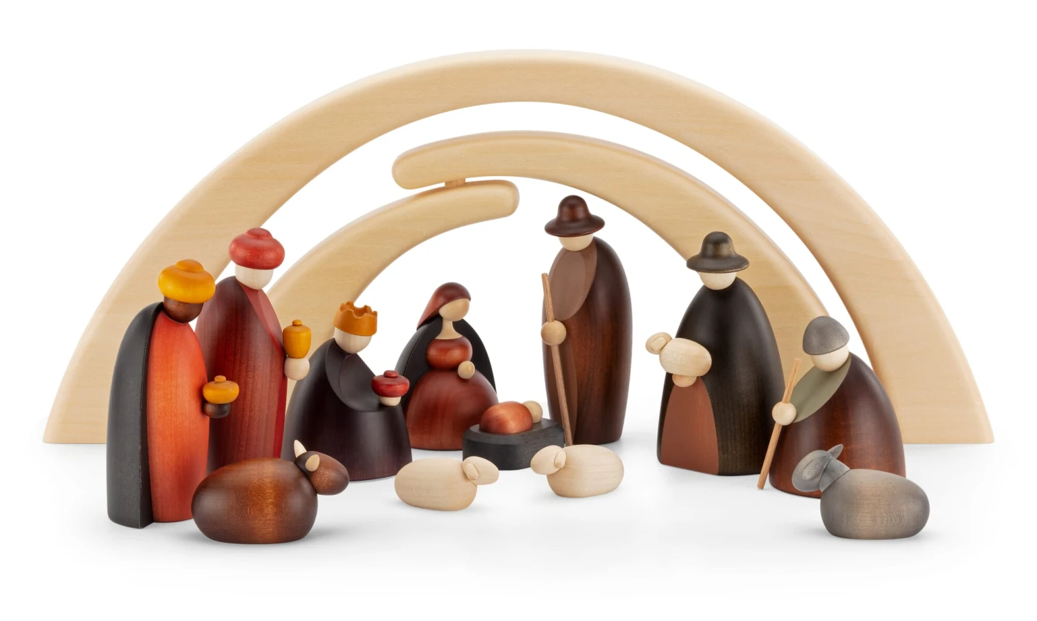 Het expressieve kerststalletje van lindehout weerspiegelt perfect het puristische materiaal- en designconcept van de manufactuur Björn Köhler. Geselecteerd in materiaal – als het beste hout voor snijwerk wordt lindehout zeer gewaardeerd voor houten beelden -, nauwkeurig in ontwerp en uitstekend in vakmanschap, heeft de kerststal tegelijkertijd een natuurlijke gratie die in deze kleinere versie weinig ruimte inneemt en toch sfeervolle accenten zet.