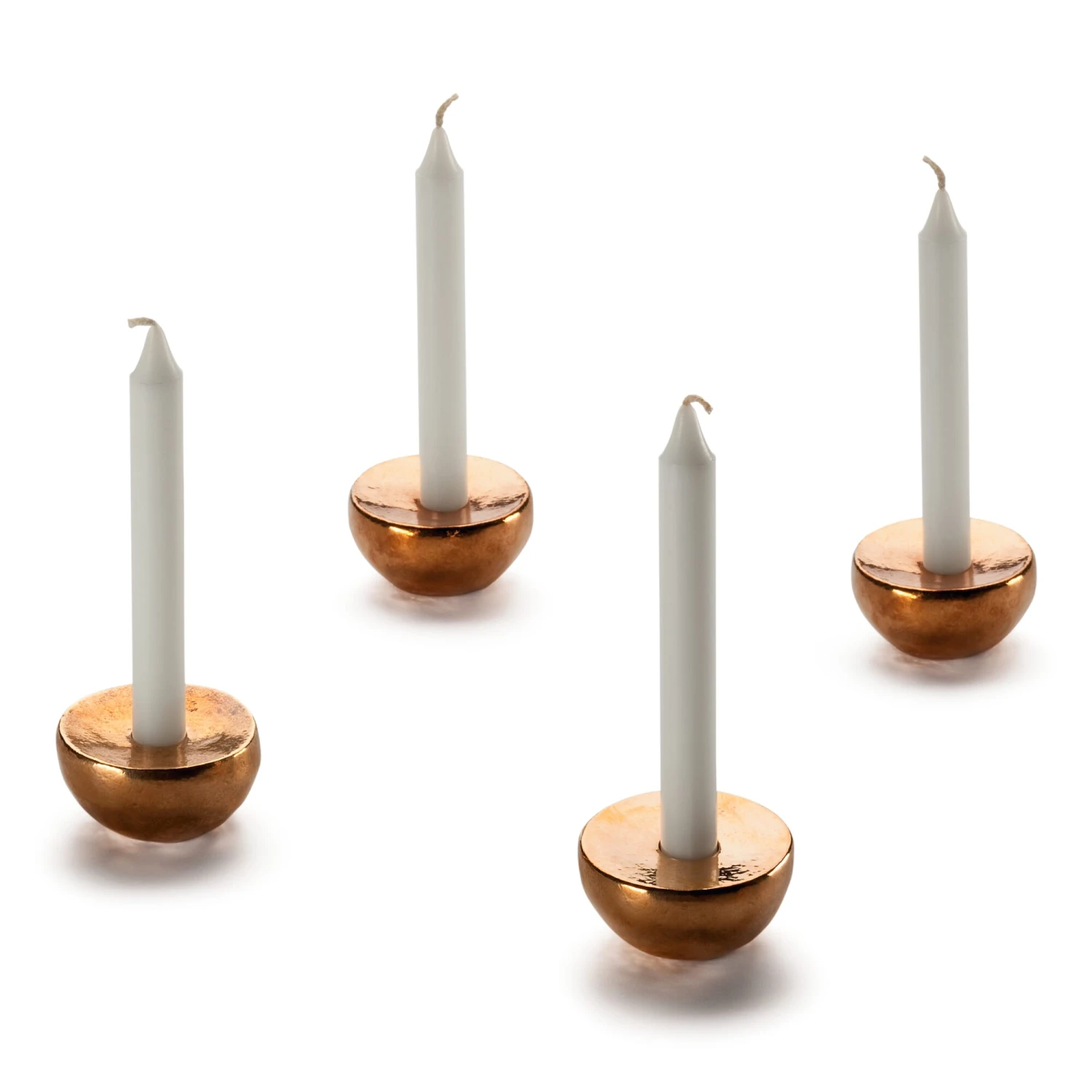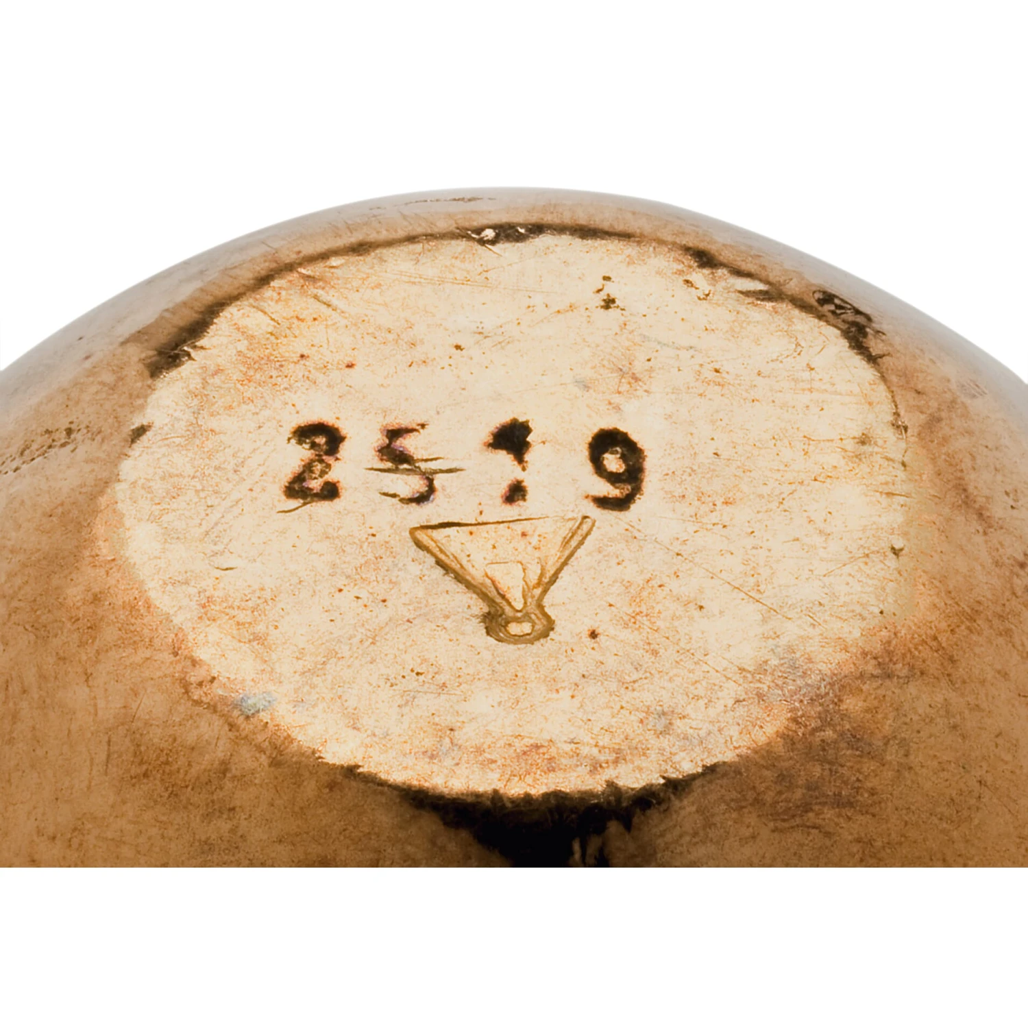 Brons gemaakt van 90% koper en 10% tin, lood- en nikkelvrij. Hoogte 2,5 cm, bovenkant 4,5 cm Ø. Gewicht 240 g. Levering zonder kaars.