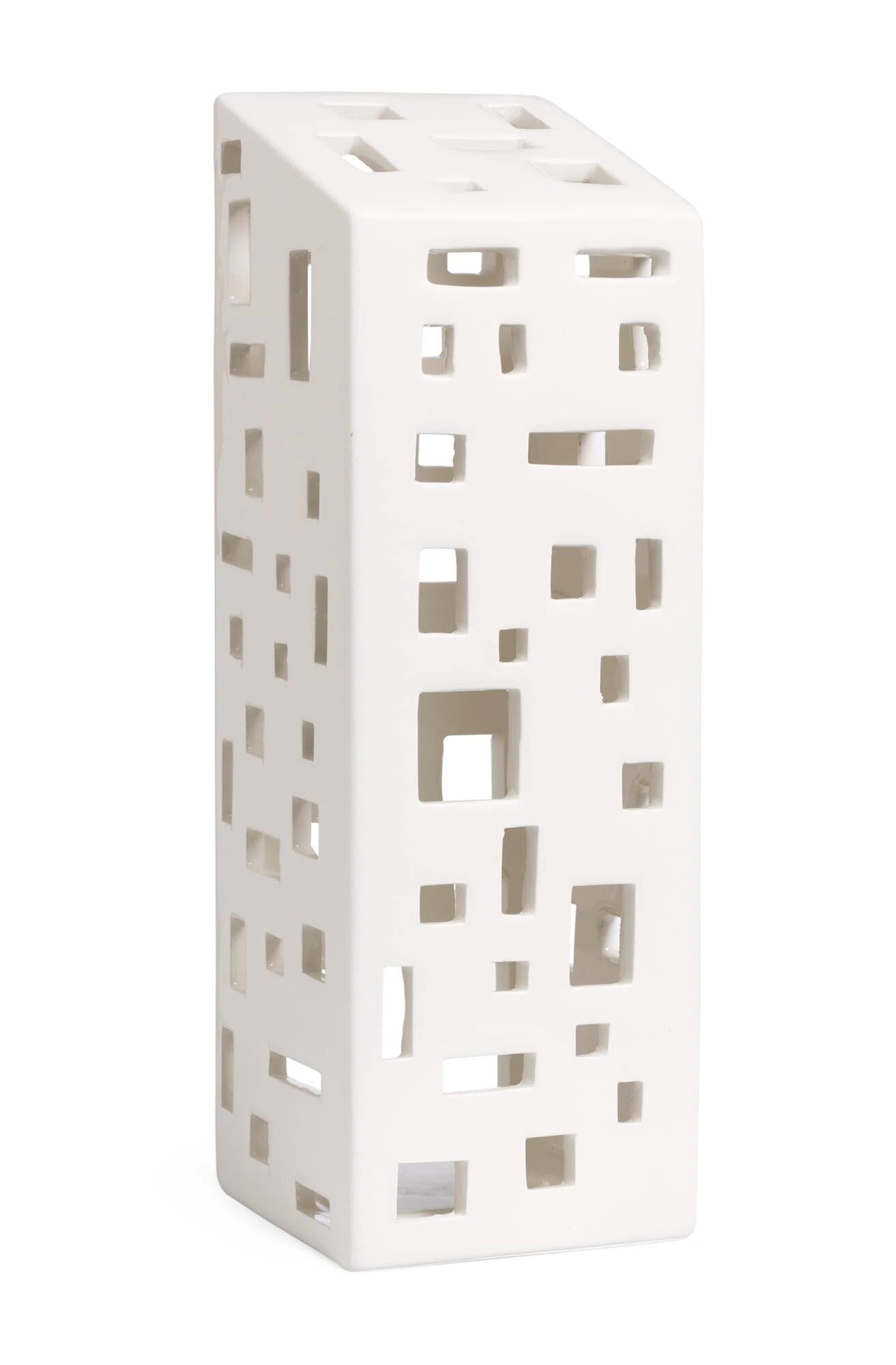 Klassieke lichthouders – niet alleen tijdens de advent. De traditie van keramische lichthuizen, die vooral in Scandinavië veel voorkomt, krijgt een nieuw gezicht met deze Objekten van verschillende afmetingen. De eenkleurige, mat geglazuurde objecten stellen archetypes van de moderne architectuur voor en doen denken aan gebouwen van Shigeru Ban. Door de doorschijnendheid van het keramische materiaal lichten de huisjes volledig op zodra ze van een waxinelichtje worden voorzien.