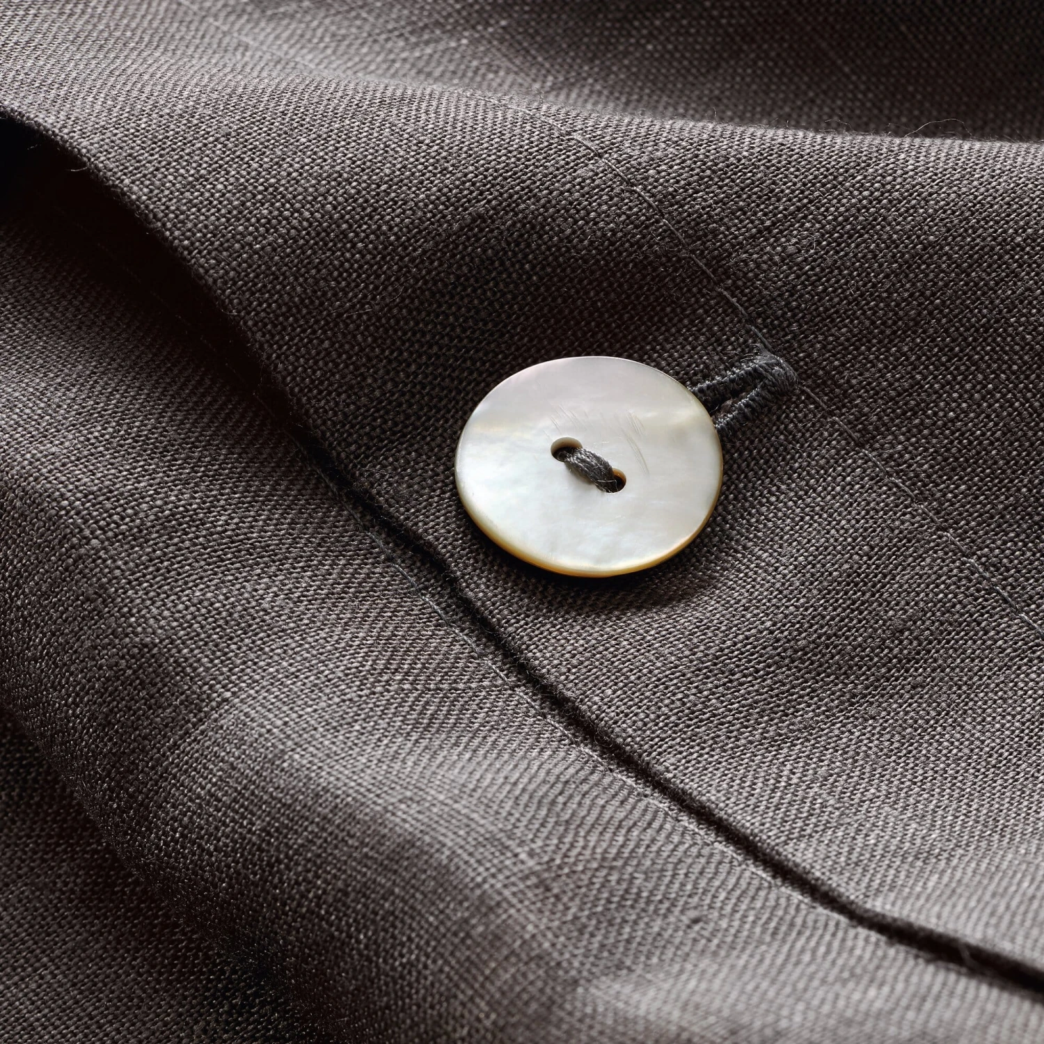 100% linnen. Herkomst Europa. Basisgewicht 146 g/m². Garengetal in de schering Nm 26, in de inslag Nm 33. Krimp 2%. Bevat niet-textiele delen van dierlijke oorsprong: parelmoeren knopen. Gemaakt in Duitsland.