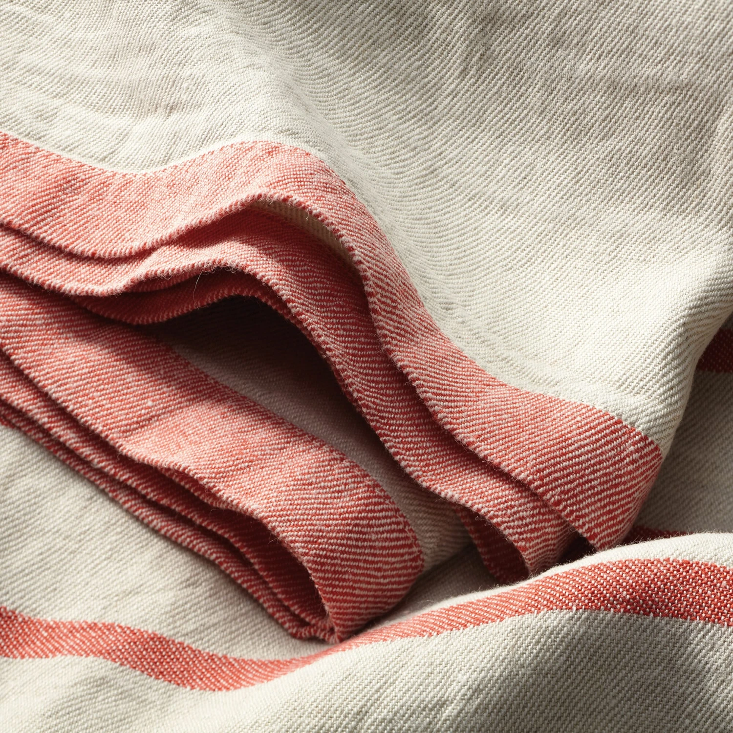 100% linnen, herkomst Europa. Geweven in keperbinding. Basisgewicht 250 g/m². De stof is voorgewassen en krimpt daardoor slechts licht. Gemaakt in Finland. 150 × 200 cm