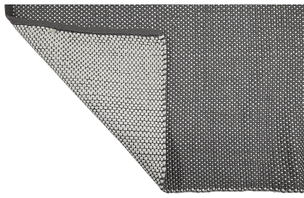 100% gerecycleerd polyester (PET), oorsprong: India, met de hand geweven en geverfd. Basisgewicht 1.700 g/m². Garengetal Nm 2/4. Machinewas tot 40 °C. Niet in de droger. Gemaakt in India.