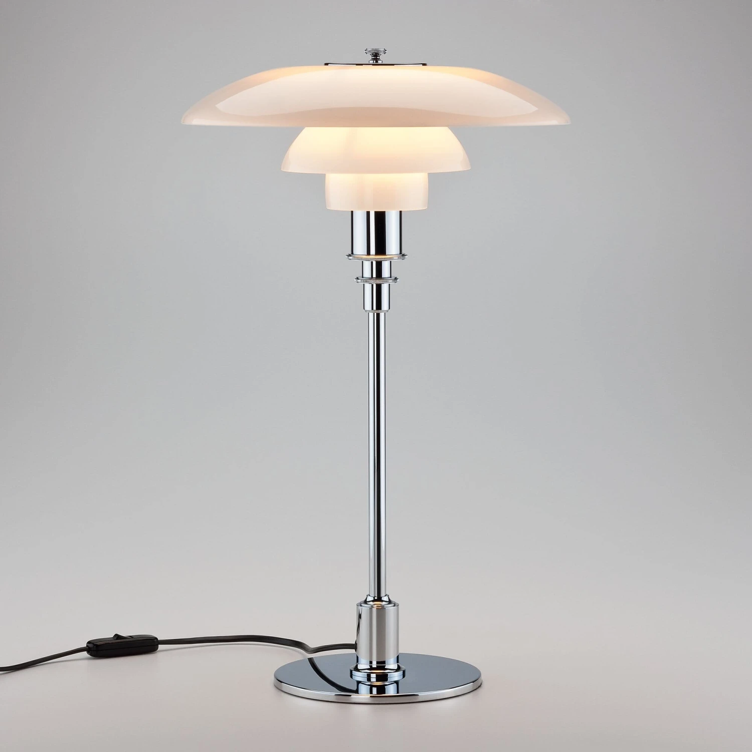Omdat tafelarmaturen variabel kunnen worden geplaatst, kunnen ze aangenaam licht leveren waar dat nodig is – daarom bevelen lichtadviseurs ze aan wanneer een harmonieuze spreiding van de lichtniveaus in een ruimte gewenst is. De PH 3/2 en PH 2/1 zijn hiervoor bijzonder geschikt, omdat ook voor deze modellen het volgende geldt: ongeveer 12 procent van het licht dringt door de opalen glazen kappen, die aan de binnenkant door zandstralen zijn gematteerd, en kunnen zo bijdragen tot een ruimteverlichting met een zachte en diffuse lichtverdeling, terwijl het grootste deel van het licht ook naar beneden wordt gericht zonder te verblinden.