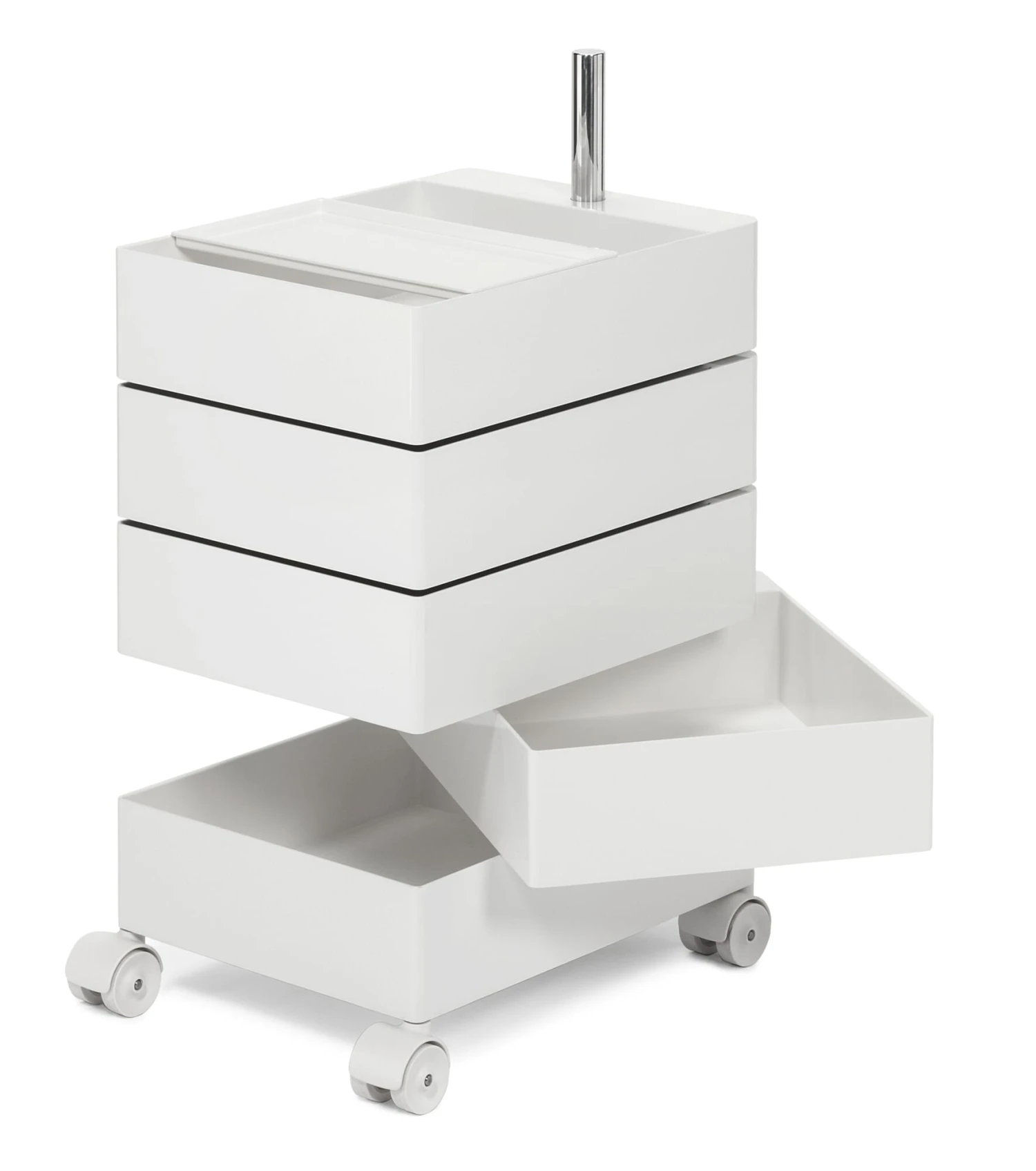 De kleine container van de 360° productfamilie overtuigt door zijn mobiliteit en flexibiliteit. Hij is ongeveer zo hoog als een bureau, staat klaar op de werkplek en biedt ruimte voor schrijfgerei en alle dingen die u graag snel bij de hand heeft.