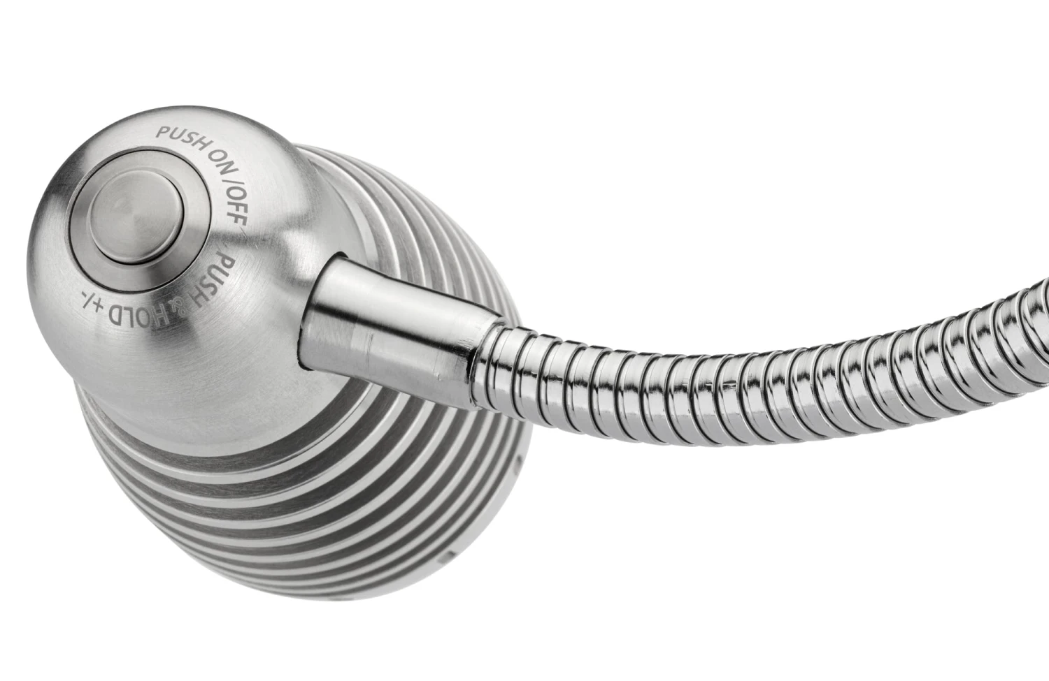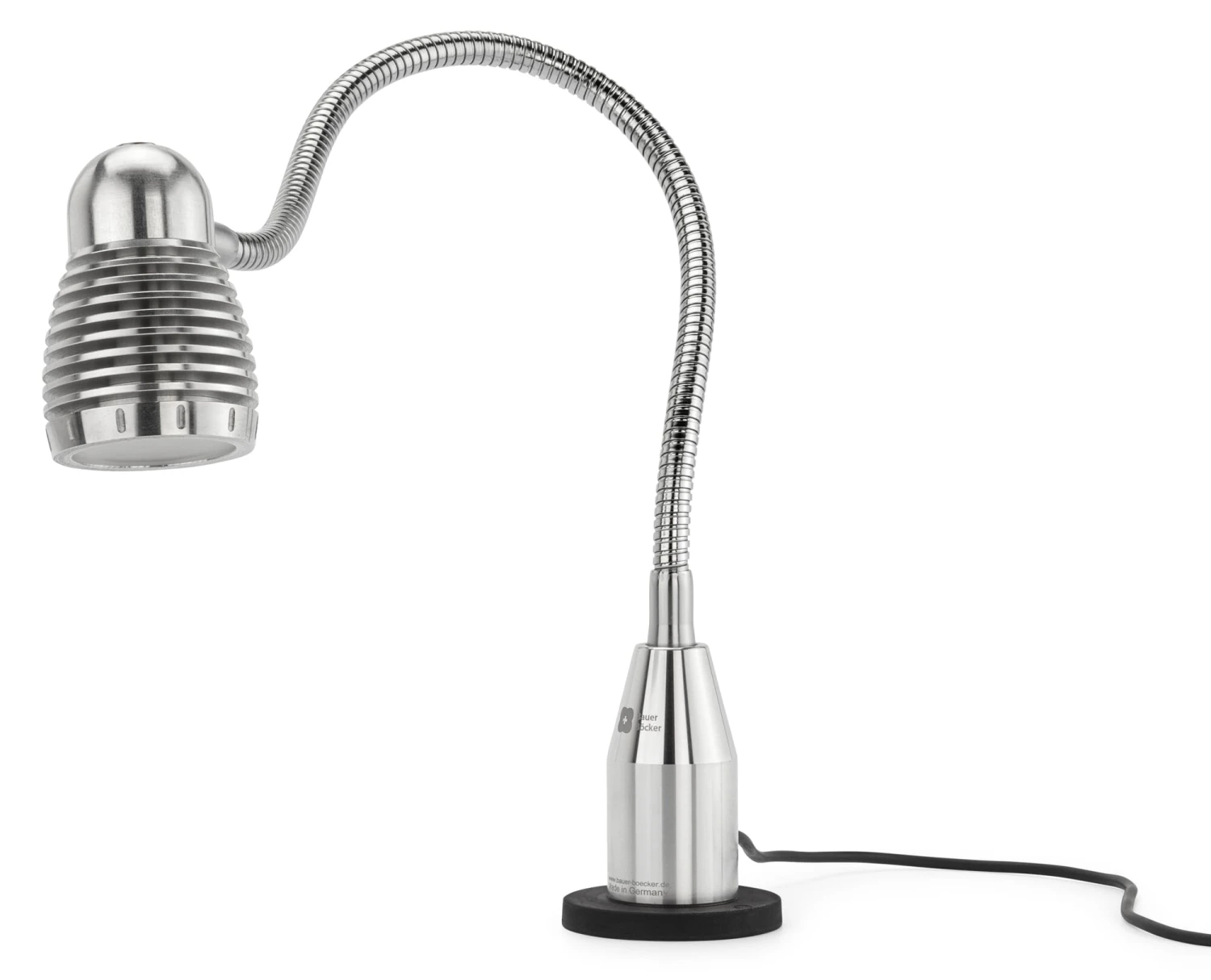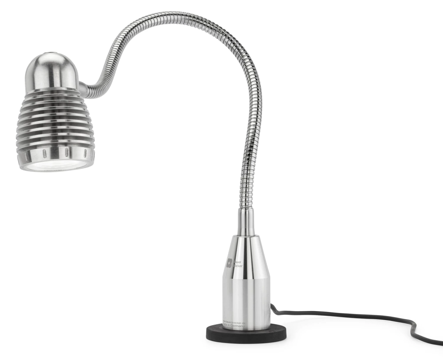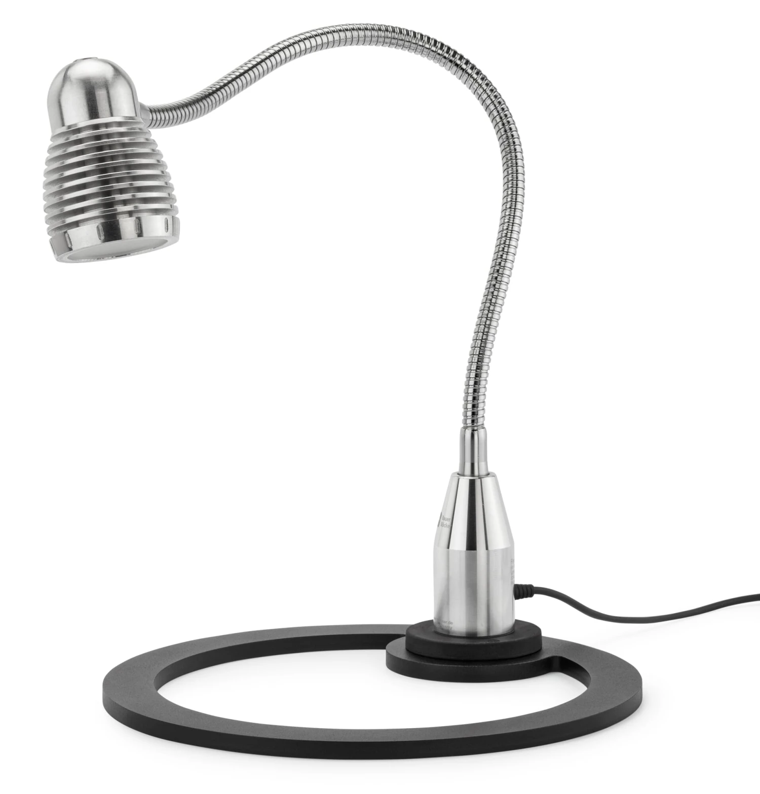 Van nature is dit een machine- en inspectielamp uit de industrie. Met zijn flexibele arm en magnetische voet is hij echter ook uiterst praktisch in huis. Daarom biedt de fabrikant ons een omgebouwde, huishoudelijke versie. Deze is dimbaar en de kleurtemperatuur is 3.000 K in plaats van 5.500 K (wat dicht in de buurt komt van de gebruikelijke kleurtemperatuur van woonkamerverlichting en gloeilampen van 2.700 K). Dankzij de magnetische voet kan de lamp op elk moment eenvoudig en omkeerbaar worden gemonteerd, bijvoorbeeld op stalen planken. Met de flexibele arm kan de armatuurkop naar wens in alle richtingen worden gericht. Tot slot is het ook vermeldenswaard dat het armatuur in Duitsland wordt geproduceerd – en last but not least dat de permanent geïnstalleerde LED-lamp indien nodig in de fabriek kan worden vervangen.