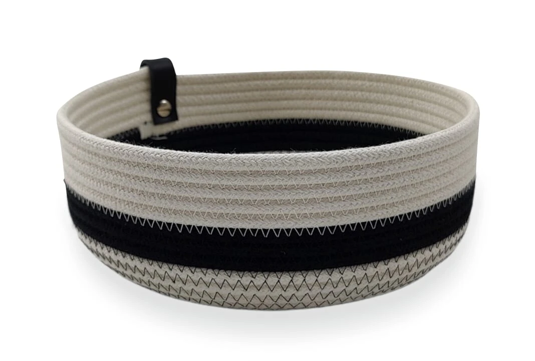 Zacht, handgemaakt gevoel en techniek gecombineerd met een fris, helder ontwerp: elk schaaltje is gemaakt van één lang stuk koord en gevormd met een eenvoudige zigzagsteek. Voor het opbergen van alle dingen van het dagelijks leven, sleutels en gsm, juwelen en spullen, post en tijdschriften. Elk stuk is handgemaakt in België. Het gebruikte katoenen koord is gemaakt van gerecycleerd textielafval zoals oude kleren of restjes stof. Hergebruik van katoenen producten vermindert afval en spaart grondstoffen.