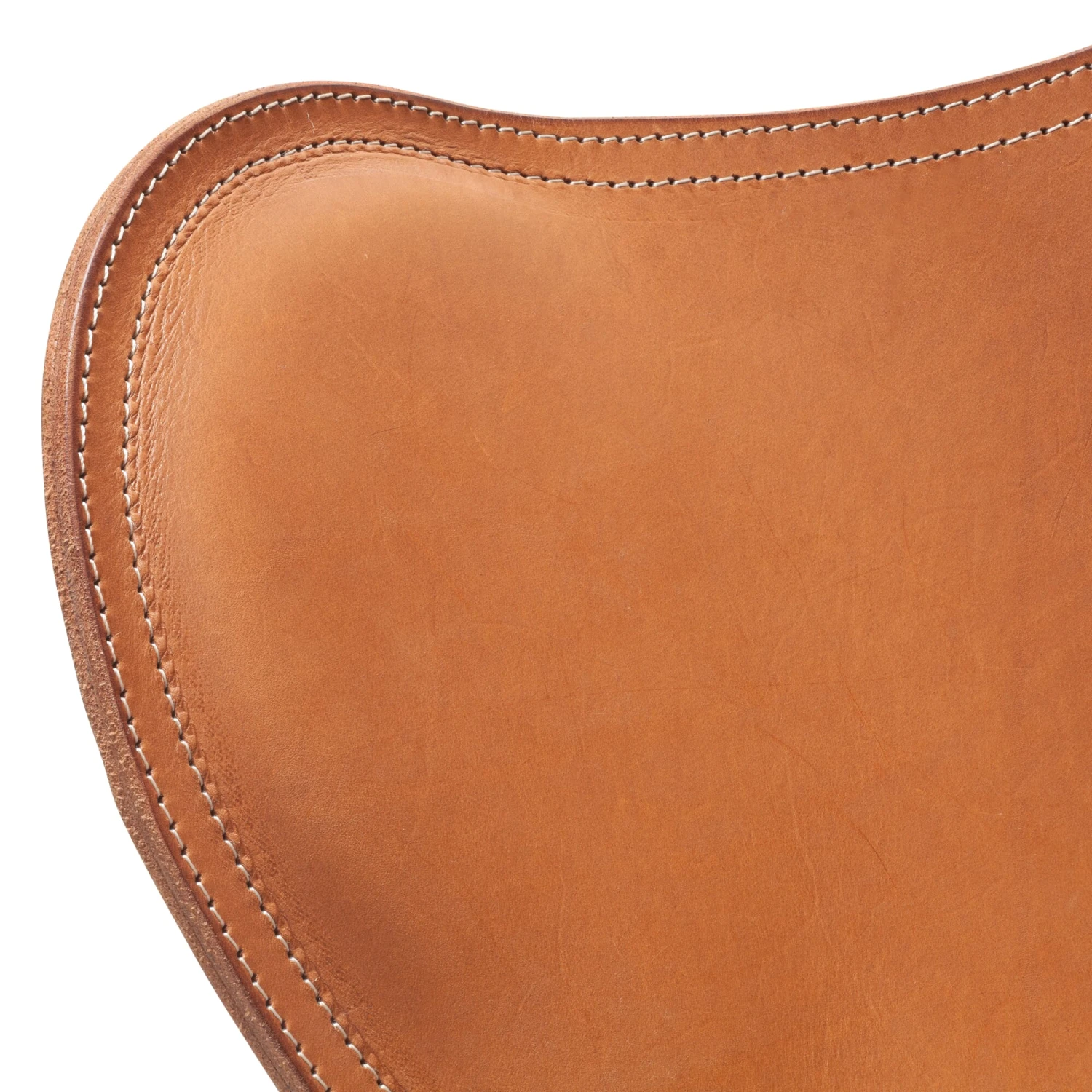 Het sterke leer waarvan de zittingen zijn gemaakt is plantaardig gelooid; een zadelleer van Franse runderen, dat volgens traditionele methoden wordt verwerkt in een looierij in Toscane die gespecialiseerd is in de productie van dergelijk leer. Het sterke leer is nauwelijks “glad gestreken”, het vertoont nog duidelijke sporen van het leven van de dieren. Het vakmanschap – bij de fabrikant in Zweden – volgt het karakter van het materiaal. Het leer is genaaid met open randen: In vergelijking met de gekederde naad is dit een zeer uitgebreide bewerking, die niet alleen visuele accenten zet, maar hier ook het technische voordeel biedt dat de naden elke beweging van het zware leer volgen.