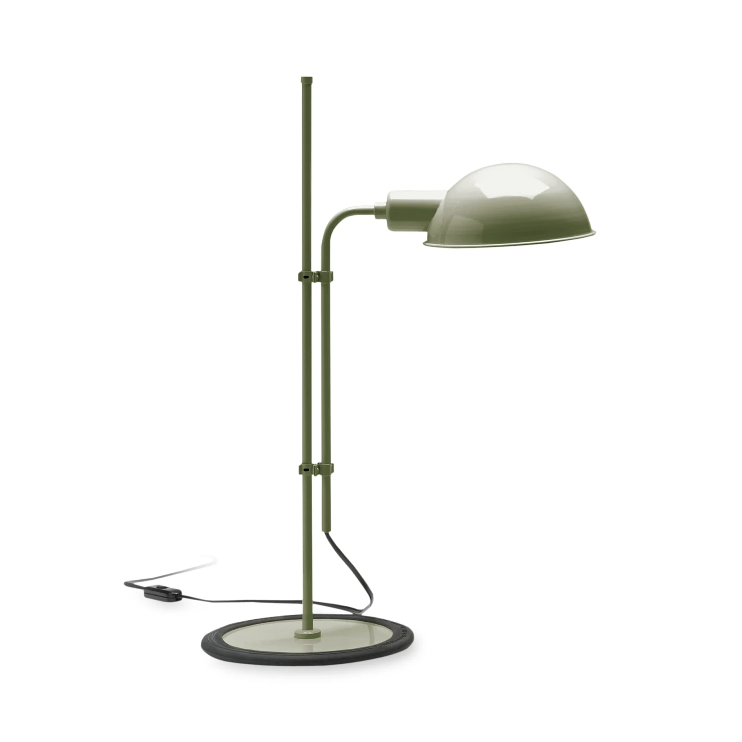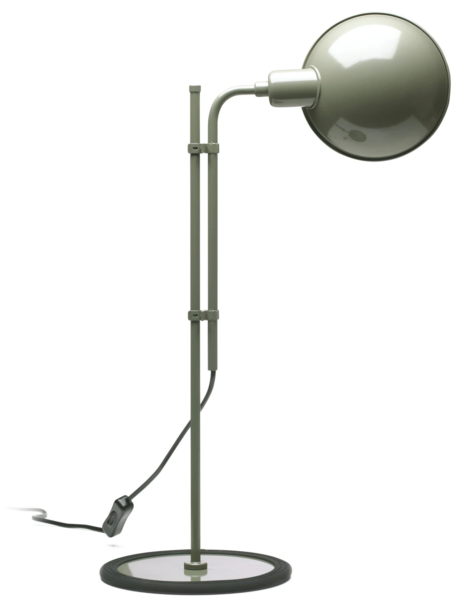 Tafellamp in klassieke industriële vorm. Voor gebruik op bureau en werkplek, in hoogte verstelbaar en met zijdelings draaibare kap voor verduistering. Kabel: L 165 cm, Eurostekker. Stopcontact: E14. Lamp niet inbegrepen. Stroomverbruik: max. 42 W.