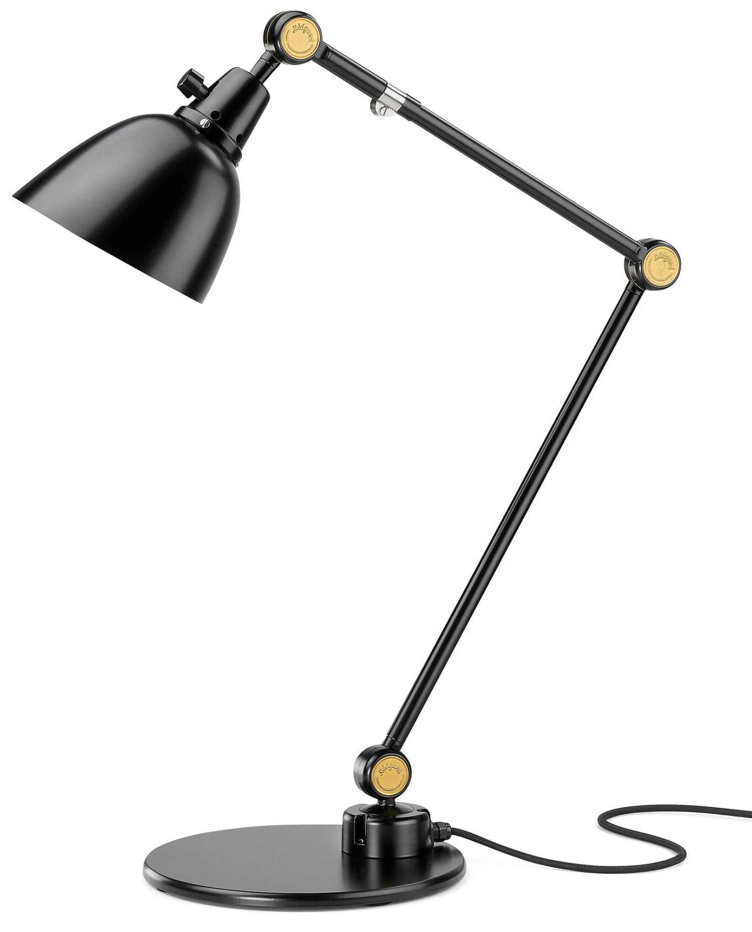 Deze bureaulamp, verstelbaar via drie scharnieren en naar keuze uitgerust met een statief of een tafelklem, komt uit een armatuurserie met de naam Modular. Het is formeel gebaseerd op de typische Midgard series van de jaren 1920 en heeft ook de typische Midgard hoekig gesneden kappen voorzien van een draaischakelaar van Duroplast. Voor de vervaardiging ervan worden nog steeds originele gereedschappen gebruikt – draaigereedschappen, pneumatische ponsmachines en persen. Een technisch hoogtepunt zijn de gewrichten, een patent van Curt Fischer uit de jaren dertig. De spanning wordt geregeld door stalen veerringen. Omdat noch de schroef noch de moer zich op het scharnierpunt van de gewrichten bevinden, kunnen zij zichzelf niet “openen” of tijdens het gebruik spanning verliezen. Als de voegspanning eenmaal is ingesteld, blijft deze gedurende de gehele levensduur van de armatuur gelijk, waardoor deze onderhoudsvrij is.