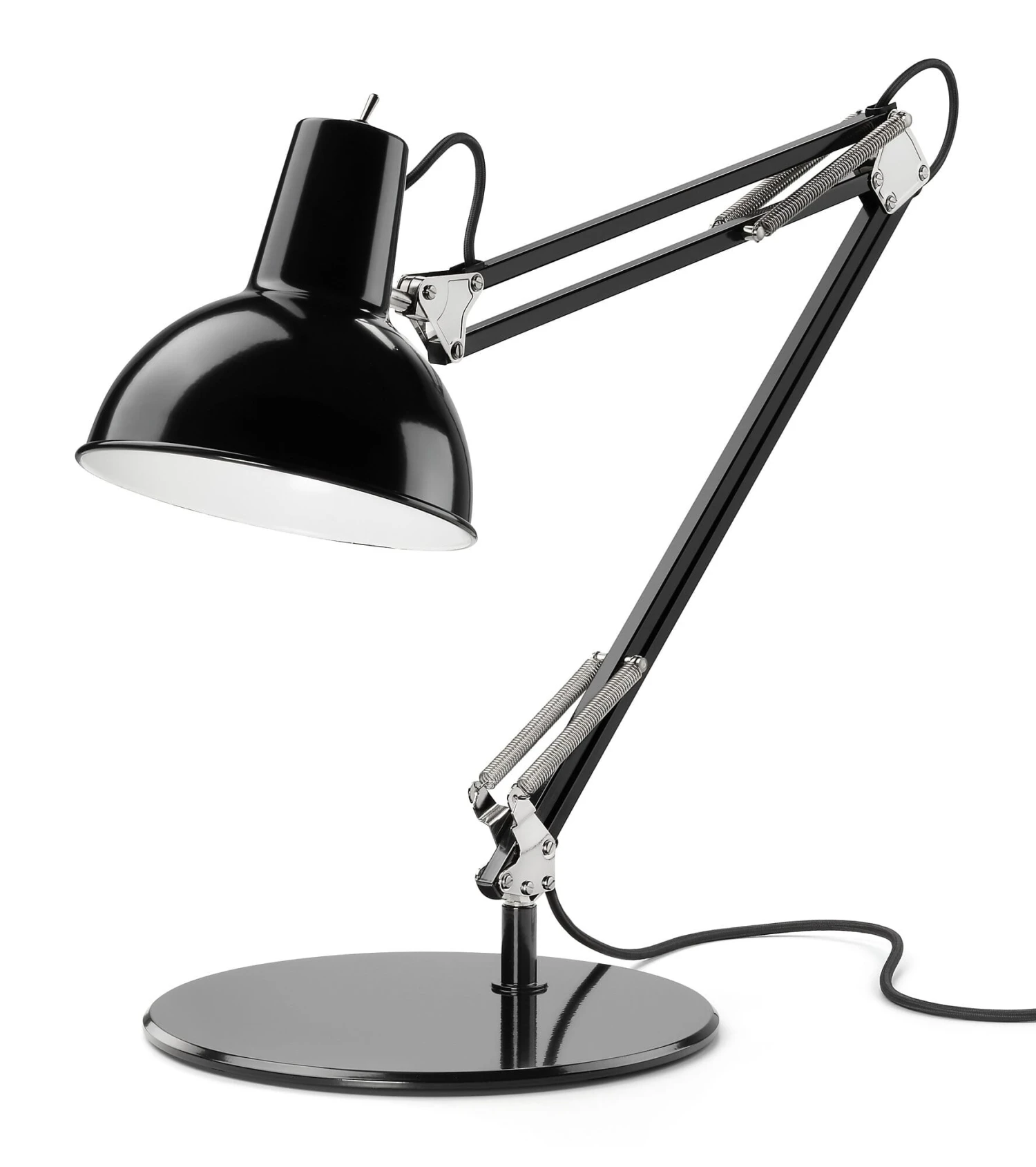 De verende armatuur is de tegenwoordige economische versie van de werkarmaturen uit de Bauhaus-omgeving. Bij deze armatuur werden de complexe scharnierconstructies voor het instellen van de helling economisch vervangen door goed functionerende trekveren. Het werd geproduceerd door Midgard in Auma in Thüringen van de jaren 1950 tot 2011 – en het zat ruim tien jaar in het Manufactum-assortiment. Nu is het weer beschikbaar. En zoals voorheen is deze versie, die gebaseerd is op het historische origineel, niet te vergelijken met de goedkope replica’s, zoals een blik op de details laat zien: sterke, niet-slijtende trekveren, stevige vierkante stalen buizen van 12 mm, een klemvoet van gegoten aluminium of een standaard van staal, waarin het draagmechanisme draait, en een degelijke metalen tuimelschakelaar op de kap.