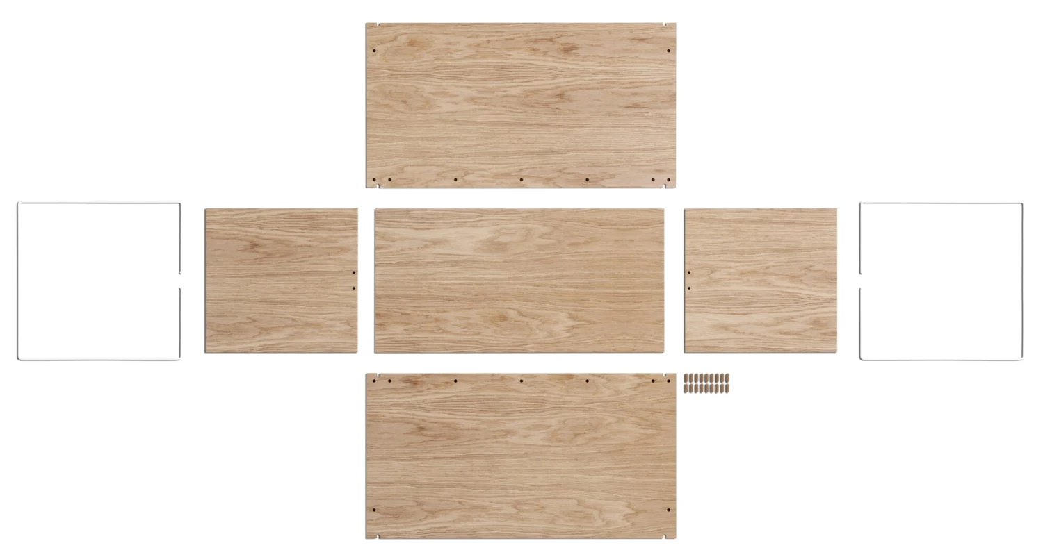 Afmetingen: B 60 × D 31 × H 33 cmVolume: 47 lGewicht: 5 kgMateriaal: MDF, eiken fineer (herkomst: Duitsland); staal, gepoedercoatOntwerp: Anders Thams, Nicholas Oldroyd en Martin D. Christensen